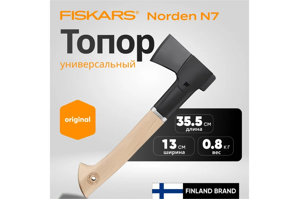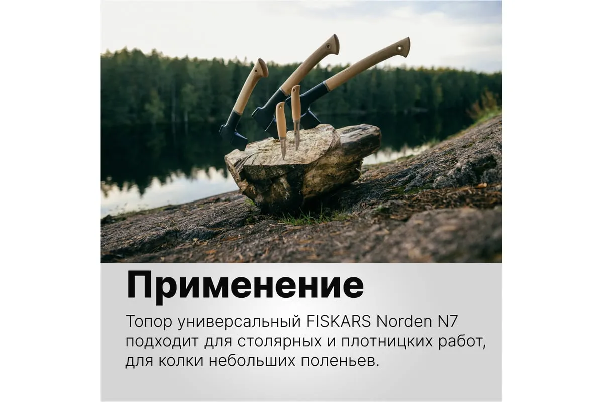 Универсальный топор Fiskars Norden N7 1051142 представляет собой удобный инструмент, который можно использовать в быту или в походных условиях. Форма лезвия позволяет раскалывать небольшие бревна, колоть щепу, затачивать колья.