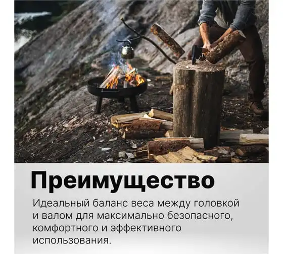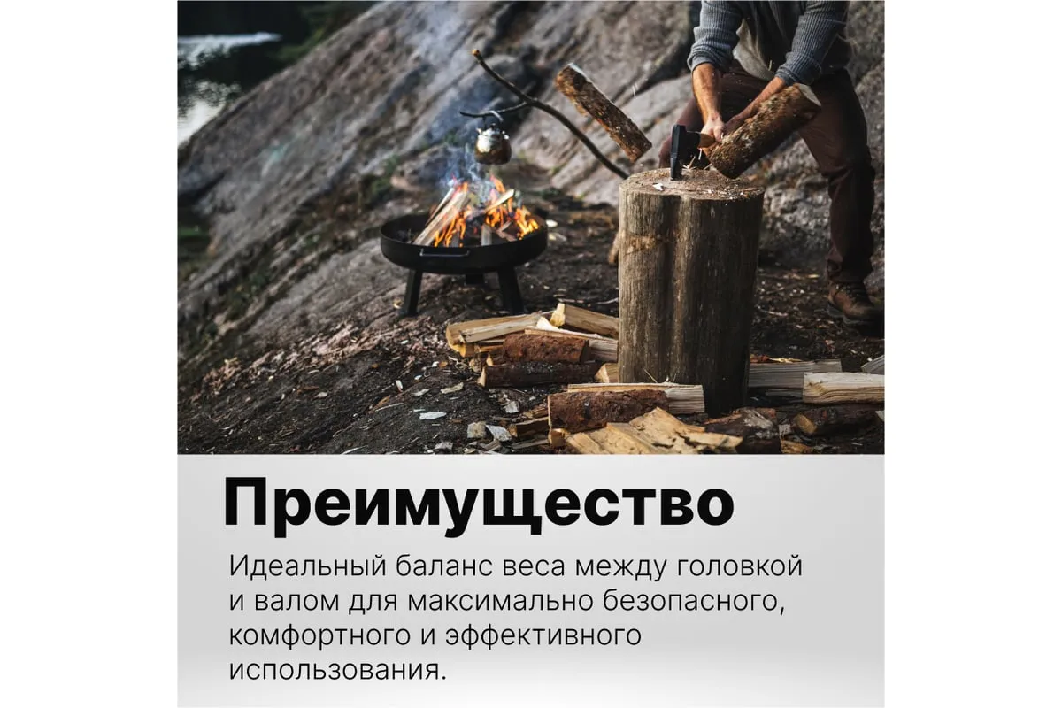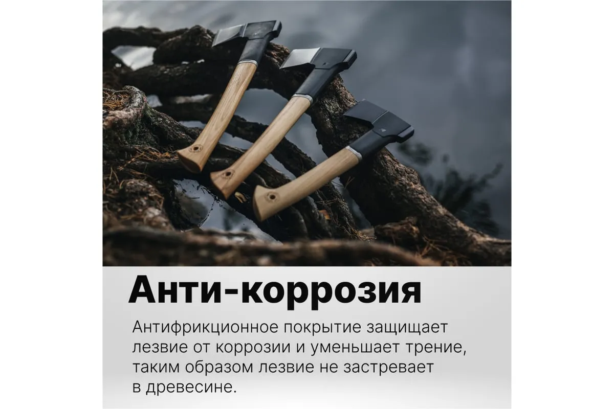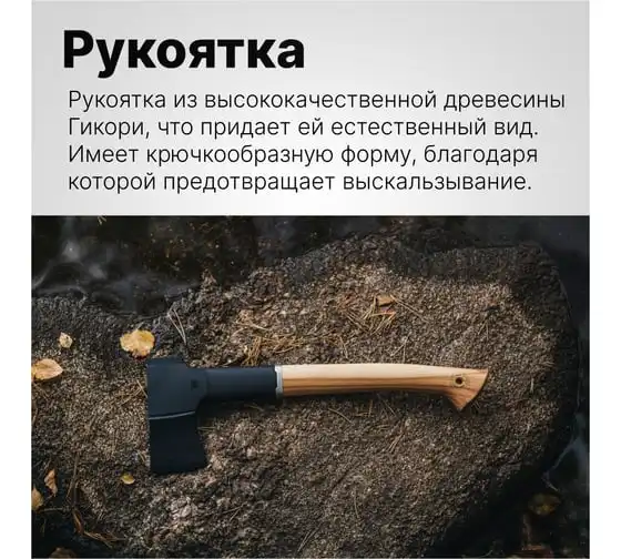 Удобная деревянная рукоять имеет специальное антифрикционное покрытие, которые исключает проскальзывание инструмента в ладонях даже при сильном замахе. Инструмент обладает оптимальным весом, который позволяет носить его без усталости в течение продолжительного времени.