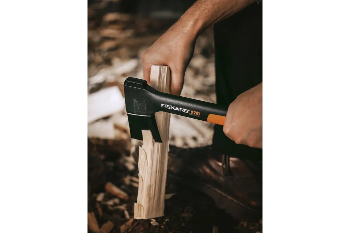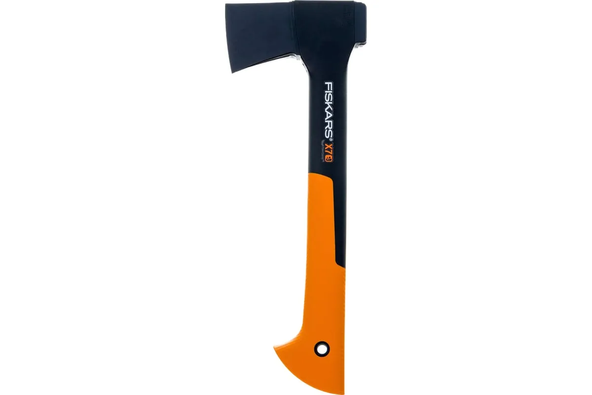 Универсальный топор Fiskars X7 - XS 1015618 (121423) обладает небольшим размером, что позволяет взять его в поход. Инструмент оснащен топорищем из прочного материала - FiberComp. Лезвие и топорище сбалансированы, что обеспечивает легкую и безопасную работу. Амортизирующее структурное покрытие SoftGrip на рукоятке делает захват надежным, исключая проскальзывание топора в руке.