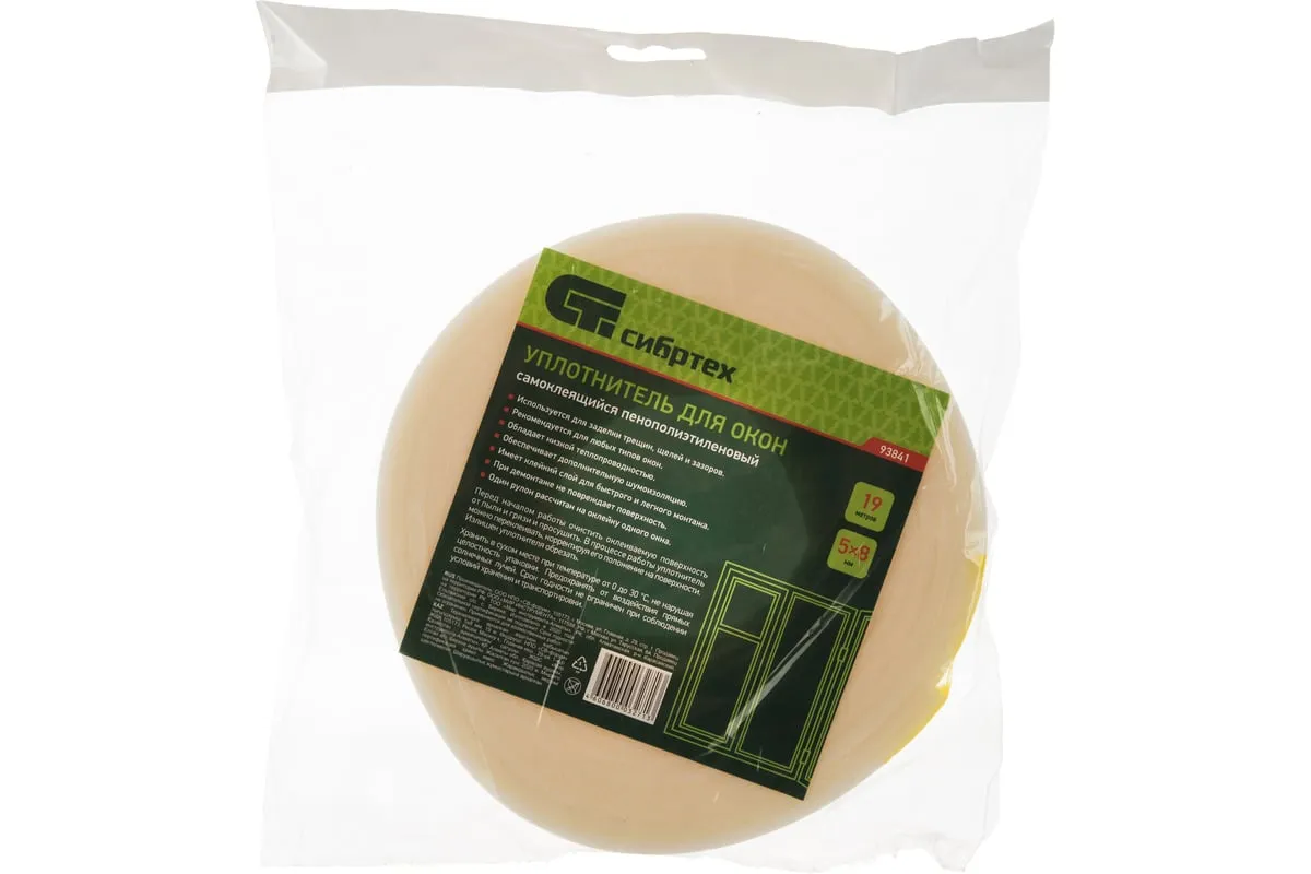Самоклеящийся уплотнитель для окон Сибртех 93841 размером 5 мм х 8 мм х 19 м обеспечивает тепло- и шумоизоляцию, предотвращает образование сквозняков, попадание пыли. Может использоваться в жилых, производственных и иных помещениях.