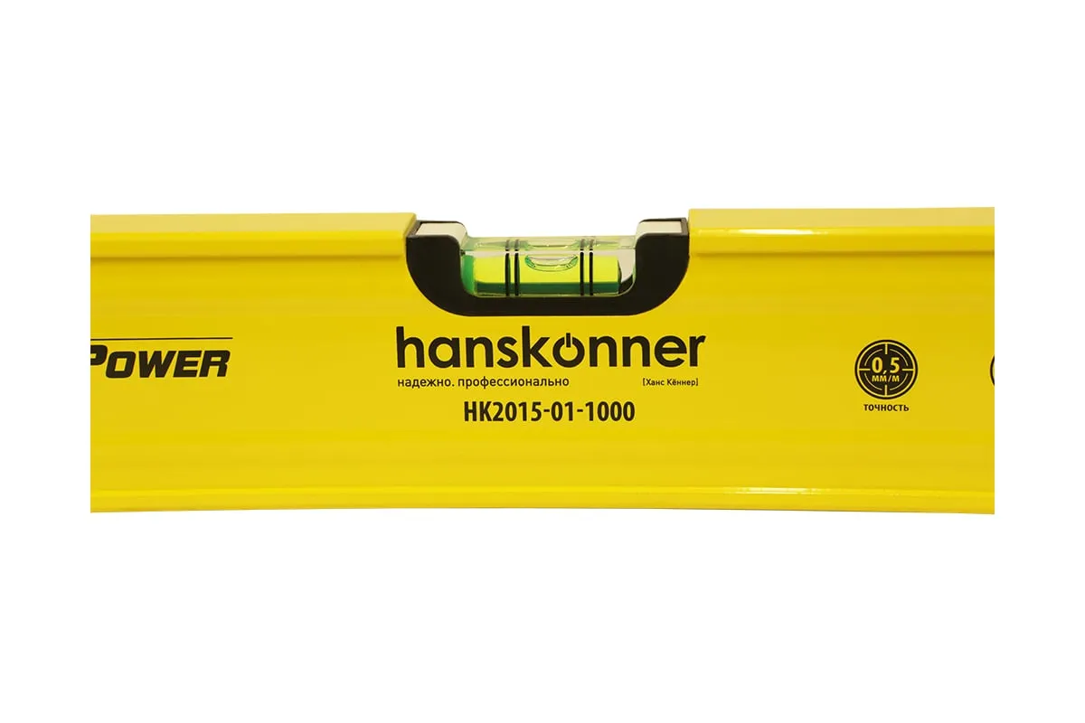 Уровень Hanskonner HK2015-01-1000 используется для выявления отклонений и неровностей по горизонтали и вертикали при проведении ремонтных работ. На 60% увеличенная толщина профиля обеспечивает высокую степень защиты точности измерений от внешнего воздействия. Колбы выполнены из высококачественного полиакрила, что предохраняет их от растрескиваний при случайных падениях. Специально разработанный спиртовой состав колб обеспечивает всепогодную стабильность измерений: от -20°С до +40°С. Резиновые боковые заглушки амортизируют падение уровня на торцевую поверхность. Фрезерованная поверхность служит для увеличения точности горизонтального положения.