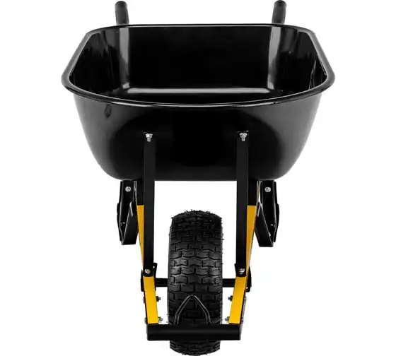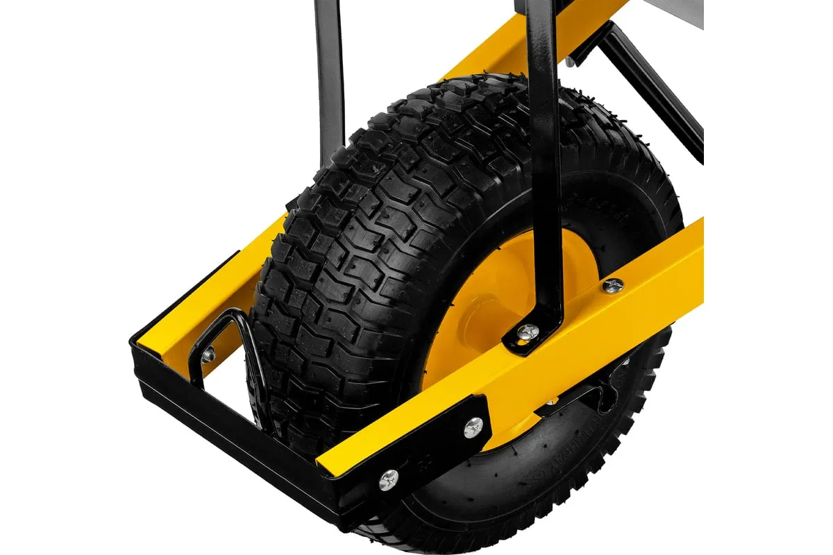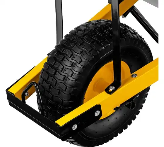 Широкое пневматическое колесо с пониженным давлением на грунт облегчает перевозку тяжелых грузов.