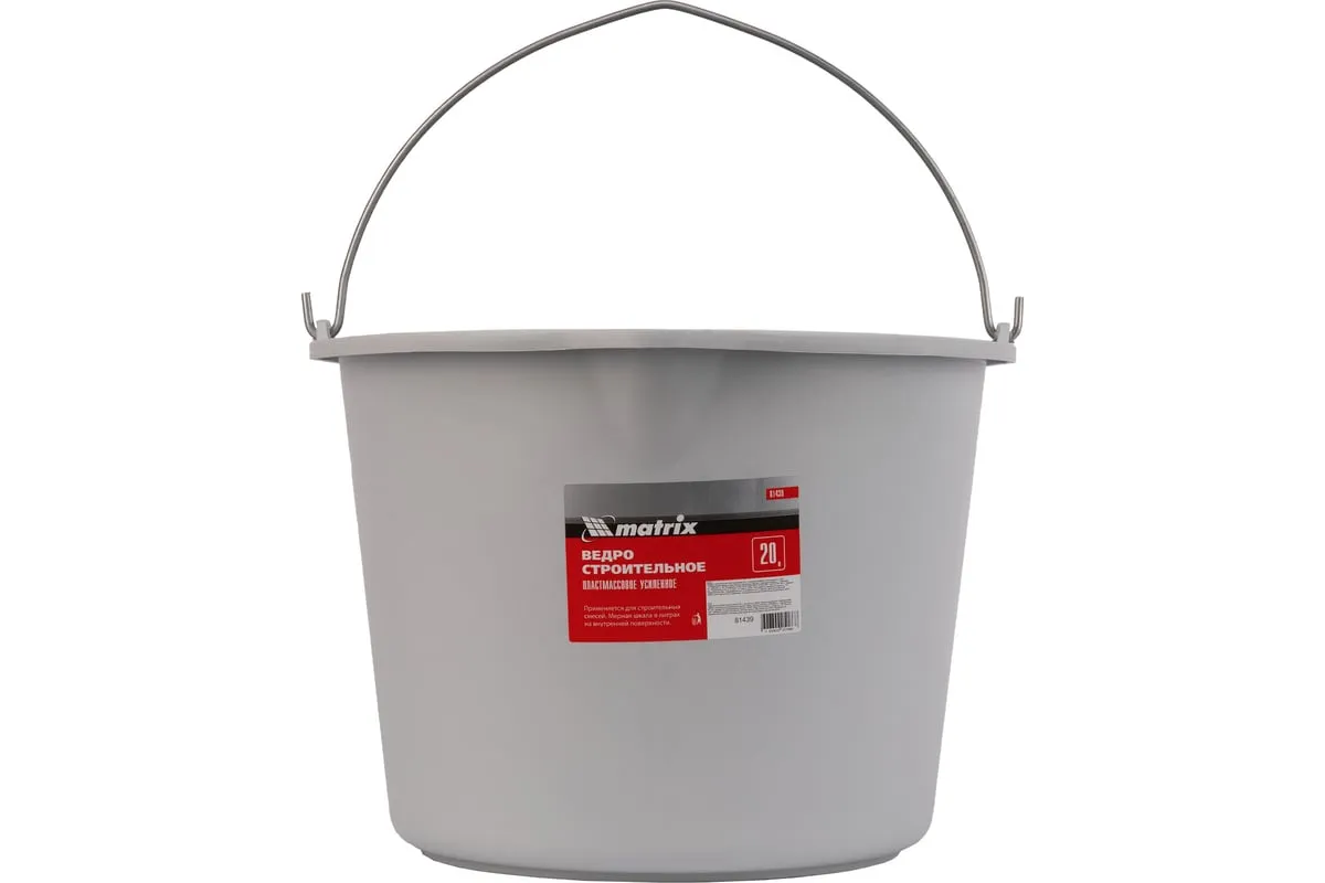 Усиленное пластмассовое строительное ведро Matrix 81439 объемом 20 л используется для строительных и отделочных работ. В нем можно замешивать лакокрасочные, клеевые и штукатурные смеси, а также перемещать их по строительной площадке. Ведро вмещает до 20 л раствора и подходит для выполнения работ значительного объема.