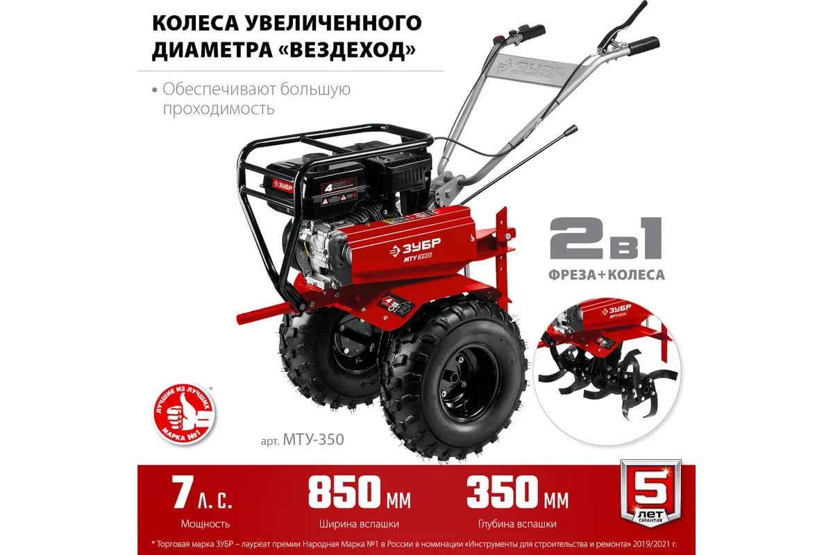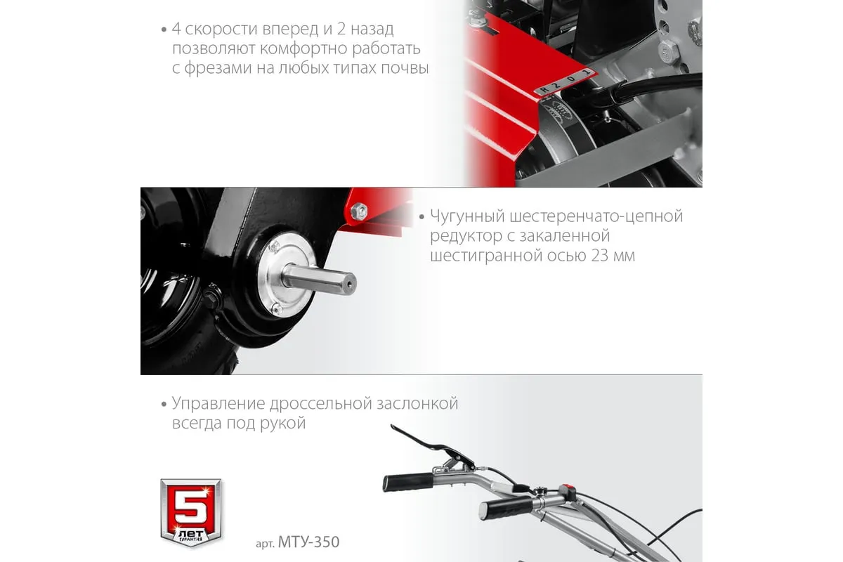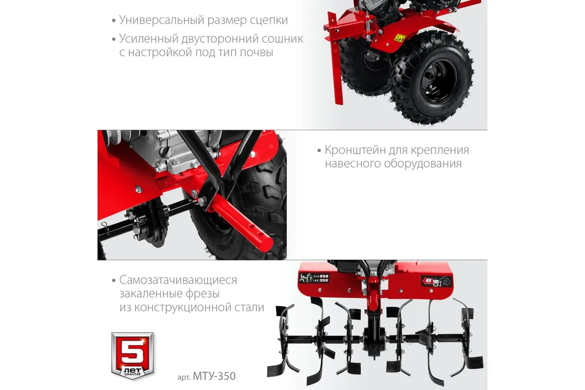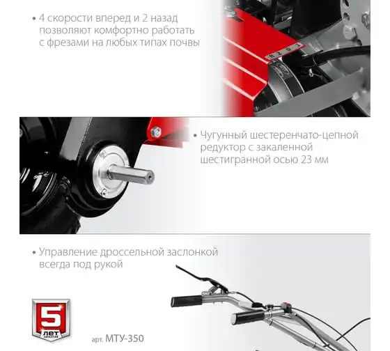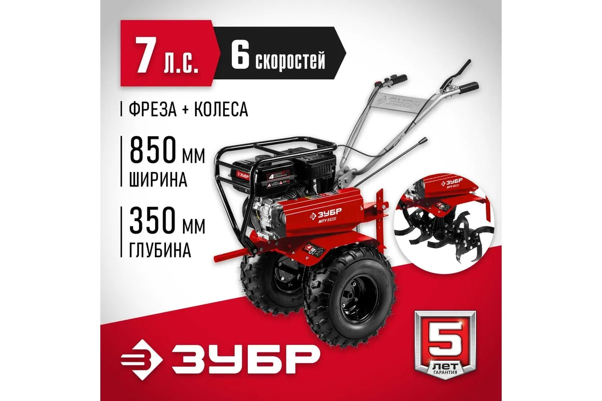 Усиленный бензиновый мотоблок ЗУБР МТУ-350 предназначен для земельных и сельскохозяйственных работ на личных приусадебных участках. Отличается многофункциональностью, благодаря возможности присоединенияразличного навесного оборудования: снегоуборщик, щетка, роторная косилка. Рукоять мотоблока настраивается под рост операторадля комфорта во время работы.