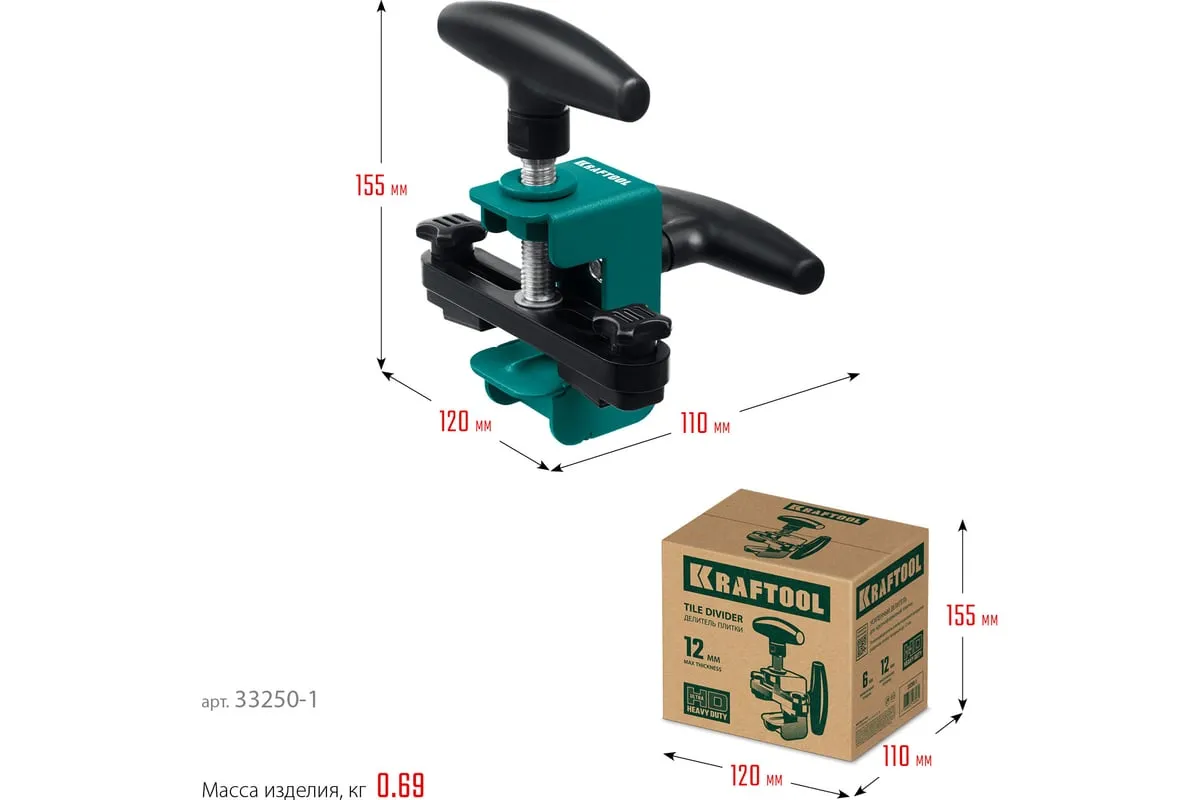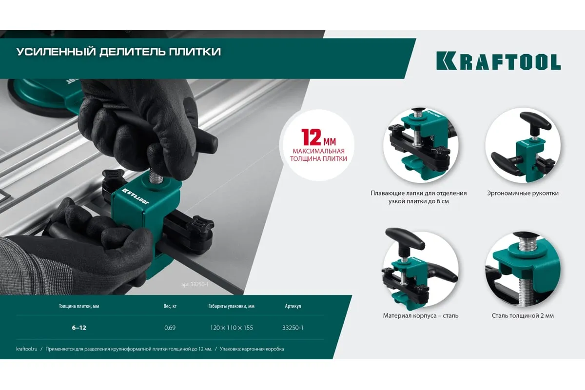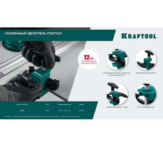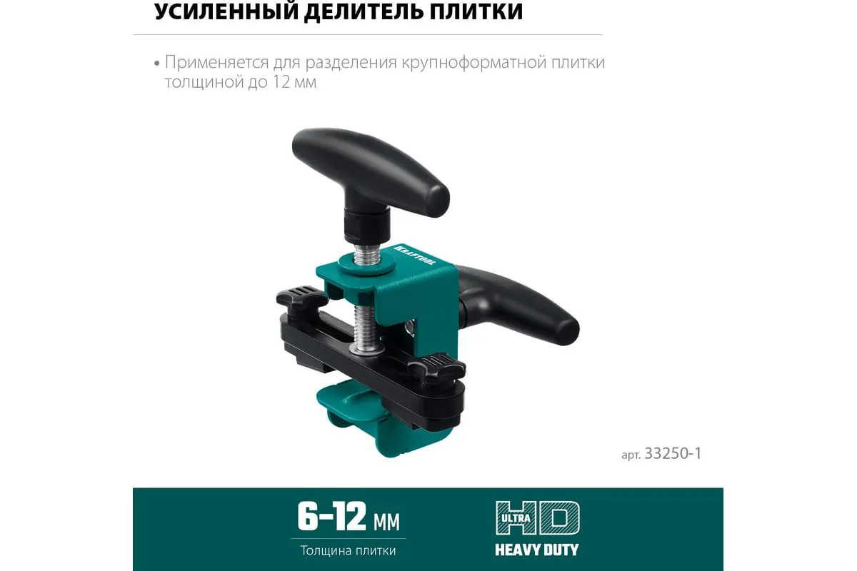 Усиленный делитель плитки из стали толщиной 2 мм с эргономичными рукоятками позволяет аккуратно и точно разделить плитку толщиной до 12 мм. Плавающие лапки помогут в разделении плитки шириной от 6 мм Для разделения крупноформатной плитки толщиной до 12 мм