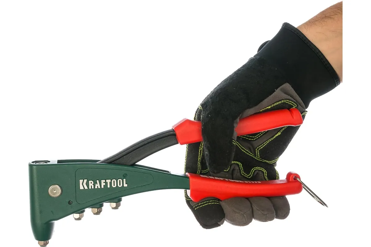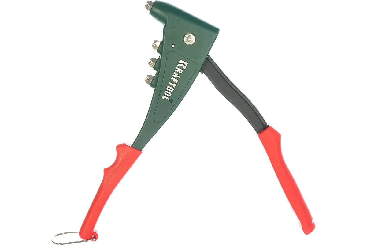 Усиленный заклепочник KRAFTOOL 31173 предназначен для создания неразъемных соединений и может работать с клепками разного диаметра 2,4/3,2/4/4,8. Смена рабочего наконечника осуществляется с помощью специального ключа. Мягкие прорезиненные рукоятки с ограничителями для пальцев обеспечивают надежный хват инструмента. Задняя рукоятка изогнута для передачи усилия при работе.