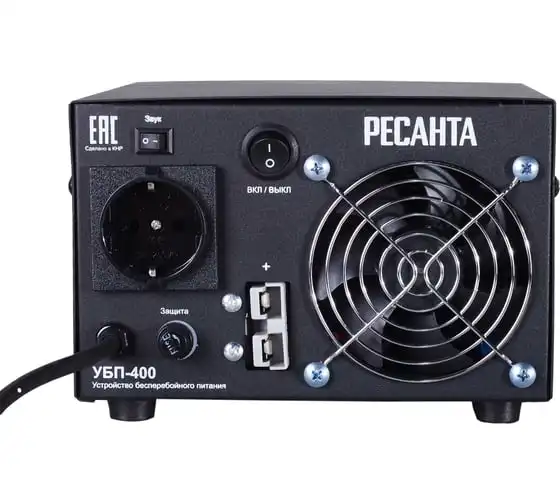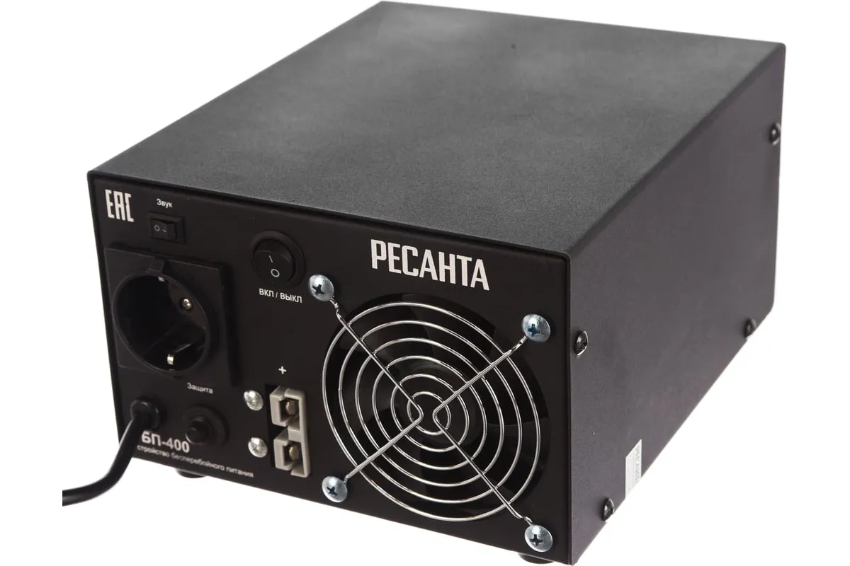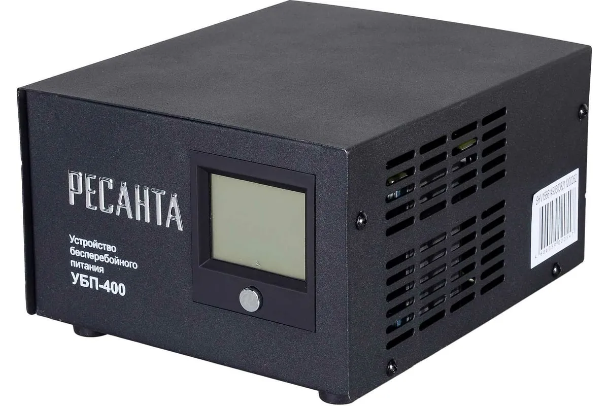 Устройство бесперебойного питания Ресанта УБП-400 мощностью 300 Вт обеспечит защиту от скачков напряжения и резервное питание электрооборудования в случае временного отключения электричества.
