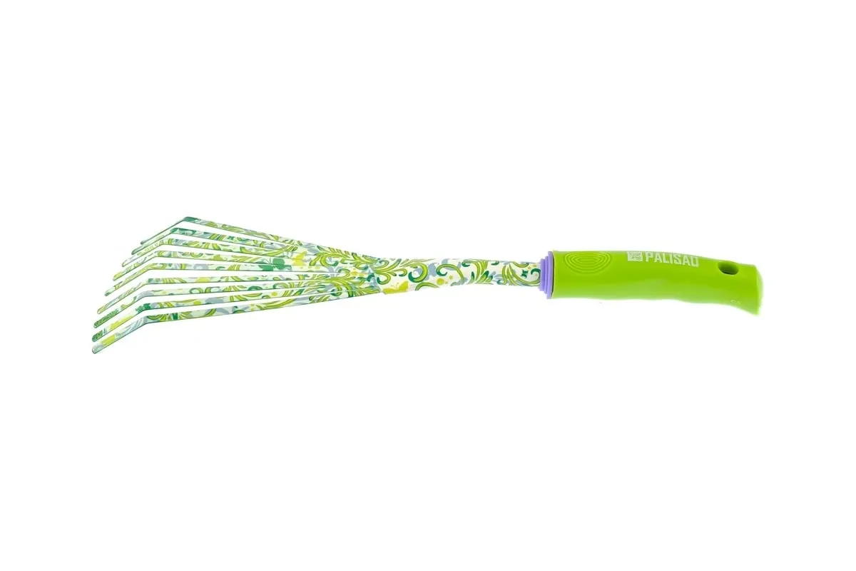 Грабли веерные 9-зубые Palisad FLOWER GREEN 620425, 130 х 415 мм, стальные, с пластиковой рукояткой, служат для садовых работ на небольших участках земли. Они используются для уборки листвы и садового мусора. Инструмент полностью готов к эксплуатации, т.к. оснащен рукояткой.