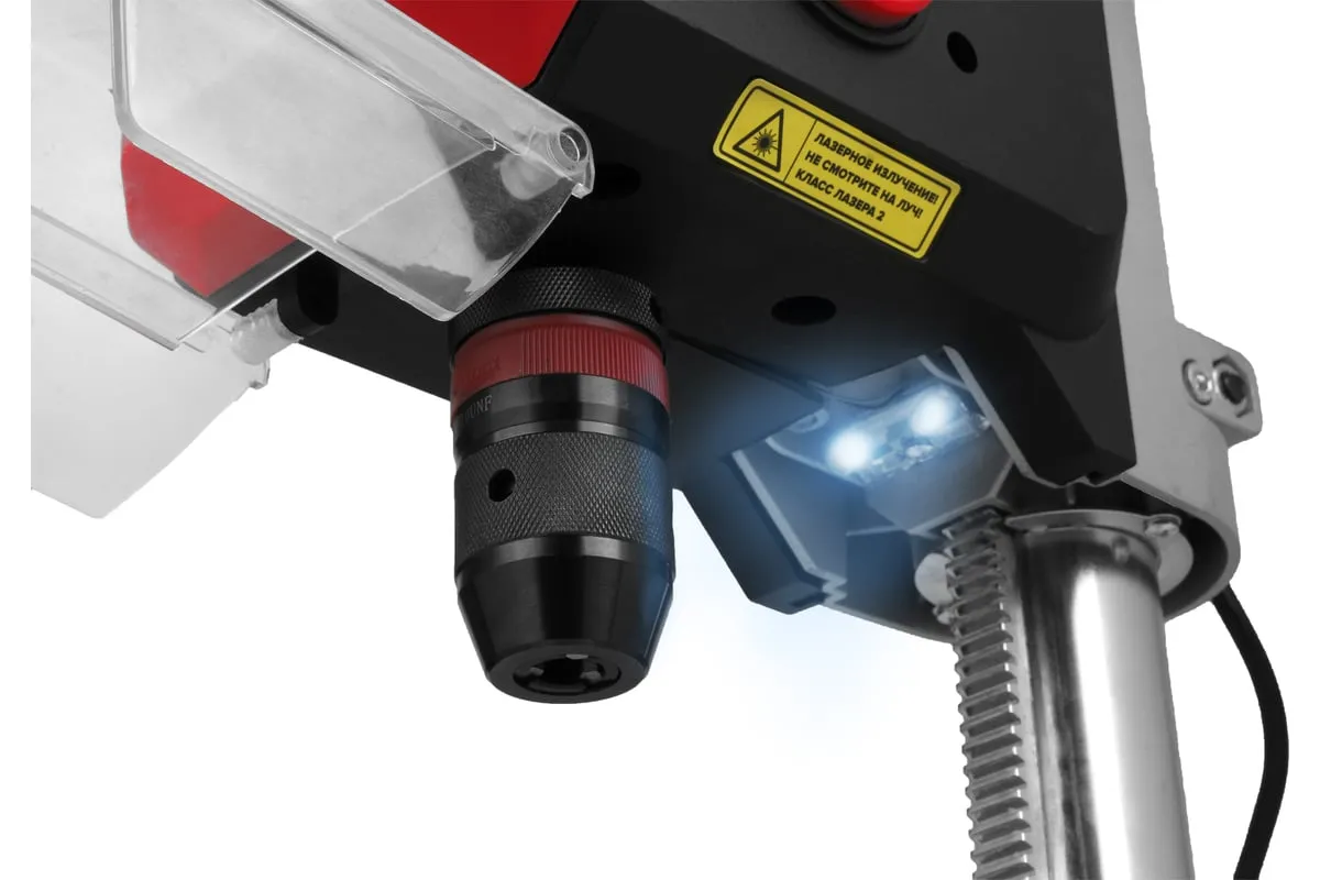 Вертикально-сверлильный станок соответствует всем требованиям безопасности: электромагнитный выключатель, прозрачный экран для защиты оператора от стружки при сверлении. Двухступенчатый редуктор с электронной регулировкой частоты вращения шпинделя позволяет подобрать оптимальные режимы для обрабатываемого материала. Константная электроника позволяет работать под нагрузкой с заданной стабильной скоростью. Быстрозажимной патрон обеспечивает удобство и комфорт при работе. Электронный дисплей предоставляет информацию о текущей скорости и глубине сверления во время эксплуатации. Надежные быстрозажимные тиски позволяют прочно закрепить заготовку, обеспечив хорошее качество отверстий. Лазерный указатель позволяет зафиксировать точку вхождения сверла в материал для достижения точного результата. Данная модель оснащена LED-подсветкой рабочей зоны.
