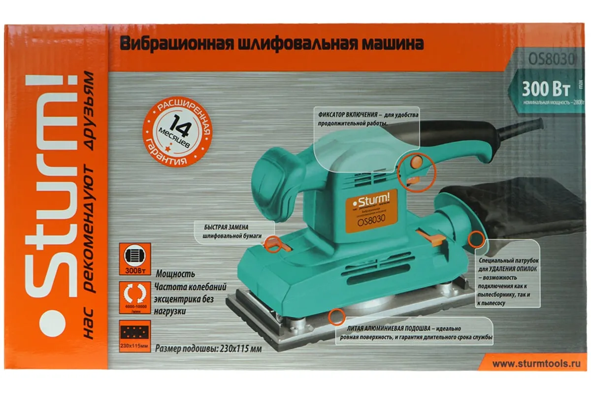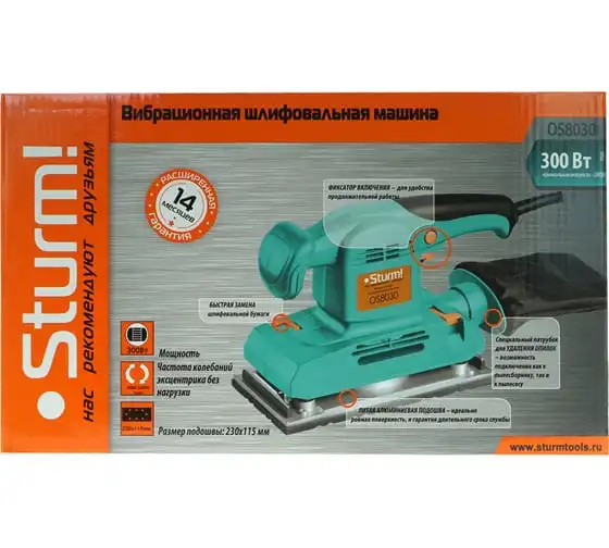 Вибрационная финишная шлифмашина Штурм OS8030 представляет собой хороший инструмент для выполнения бытовых работ. Наличие фиксатора кнопки включения, длительная непрерывная работа становится удовольствием. Инструмент предназначен для общих и финишных отделочных работ.