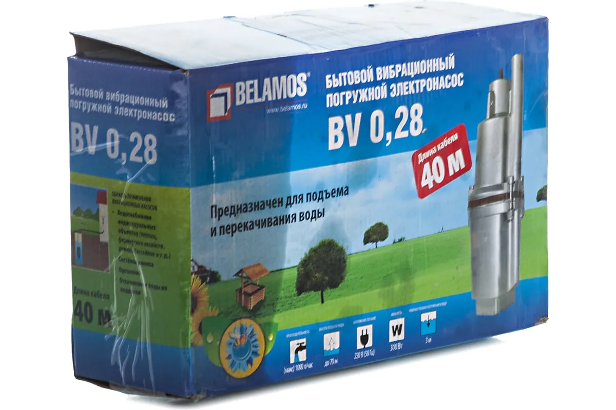 Погружной вибрационный насос БЕЛАМОС БВ028, кабель 40 м используют в частных домах и на загородных участках, где отсутствует центральное водоснабжение. Агрегат предназначен для выкачивания чистой воды из скважин, колодцев, для полива садового участка и подачи воды в дом. Прибор оснащен кабелем длиной 40 метров, что позволяет устанавливать его вдали от источника питания. Неприхотливость в техническом обслуживании делает насос простым и экономичным в эксплуатации.