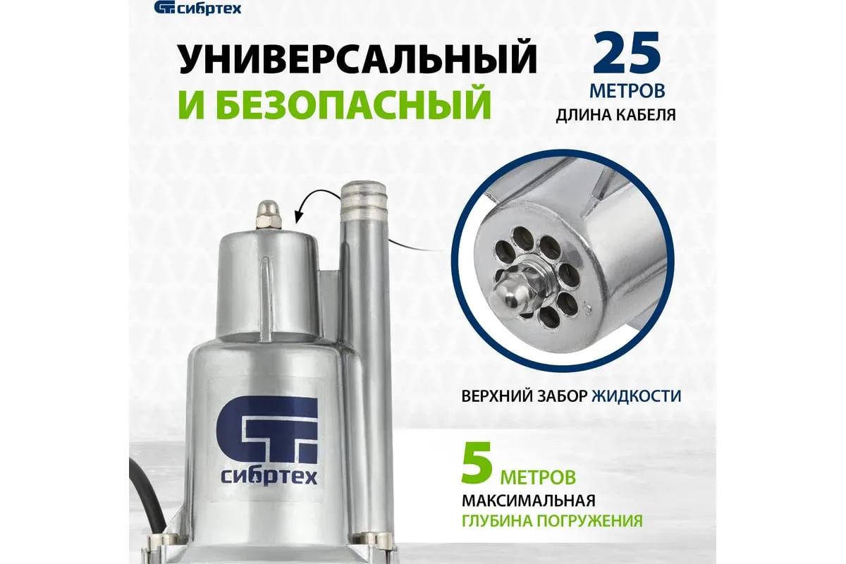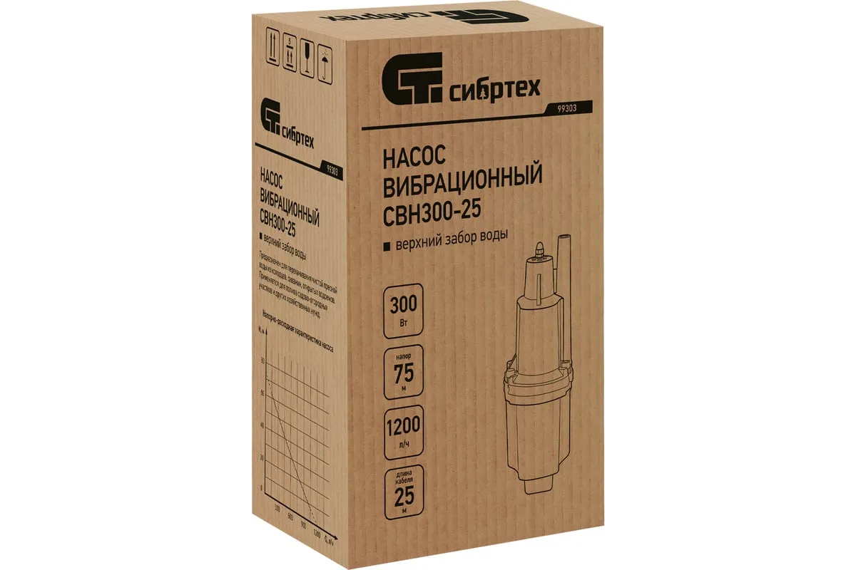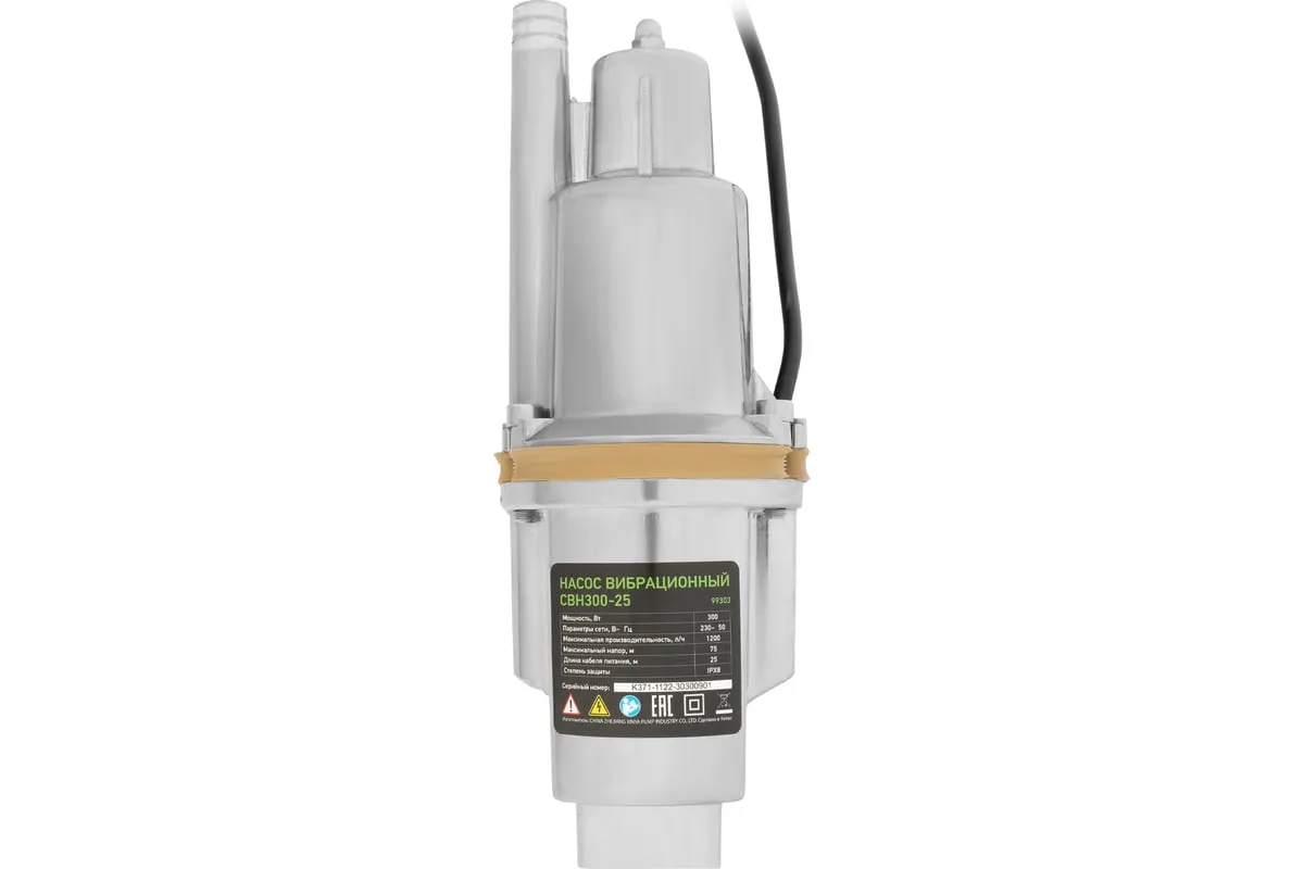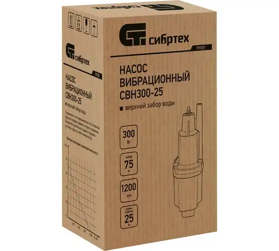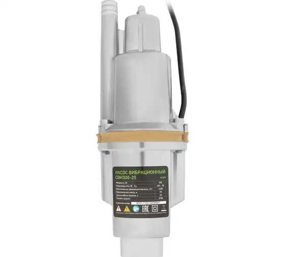 Вибрационный насос СИБРТЕХ СВН300-25 кабель 25 м 99303 предназначен для подачи воды из колодцев и скважин. Имеет прочный алюминиевый корпус длядолгого срока службы. Вибрационный механизм способствует пропускной способности до 20 литров воды в минуту. Максимальный диаметр прокачиваемых частиц - 1 мм.
