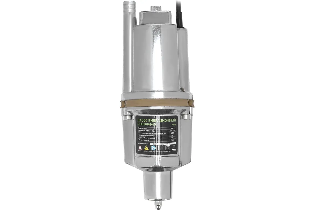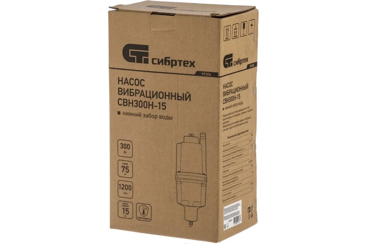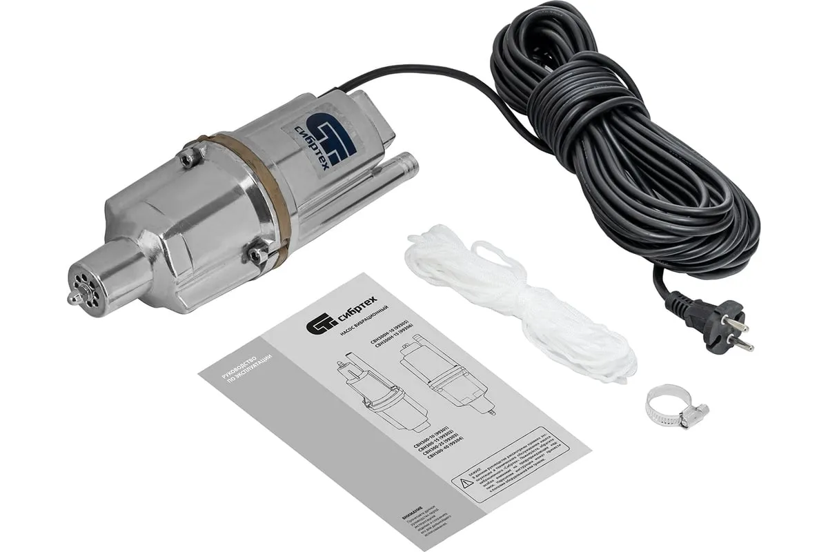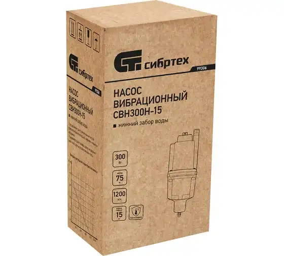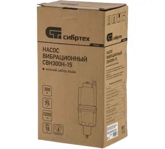 Вибрационный насос СИБРТЕХ СВН300Н-15 кабель 15 м 99306 используется для подачи воды из колодца и скважин, а также подходит для перекачивания чистой и пресной воды. Корпус изготовлен из алюминия, защищает внутренние элементы от механических повреждений. Благодаря нижнему забору воды, насос способен откачивать воду до минимального уровня. Максимальный диаметр прокачиваемых частиц - 1 мм.