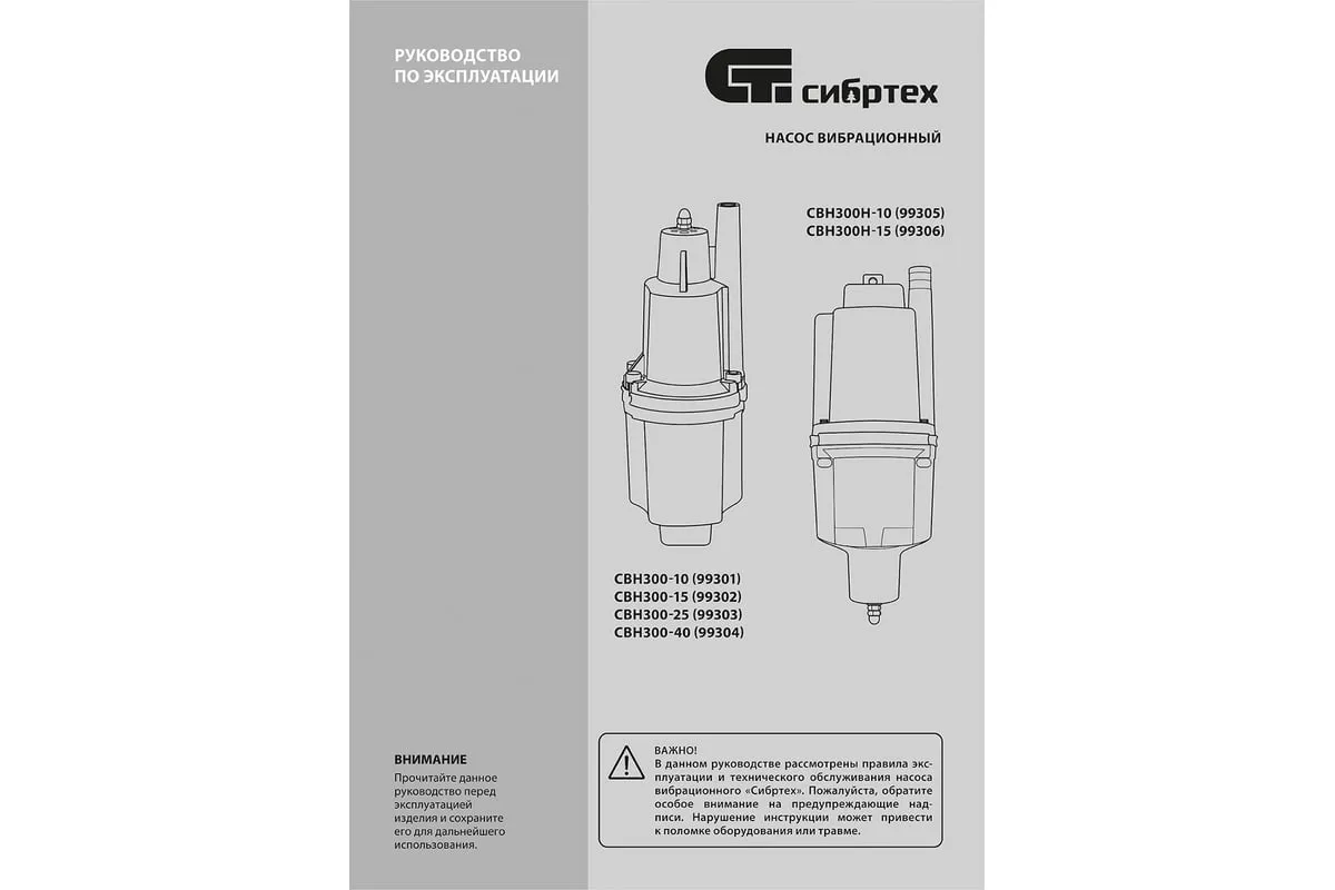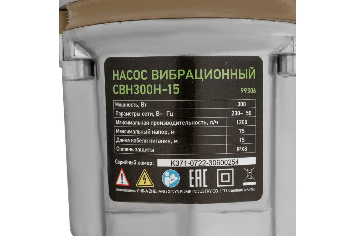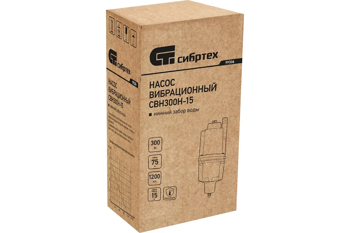 Вибрационный насос СИБРТЕХ СВН300Н-15 кабель 15 м 99306 используется для подачи воды из колодца и скважин, а также подходит для перекачивания чистой и пресной воды. Корпус изготовлен из алюминия, защищает внутренние элементы от механических повреждений. Благодаря нижнему забору воды, насос способен откачивать воду до минимального уровня. Максимальный диаметр прокачиваемых частиц - 1 мм.