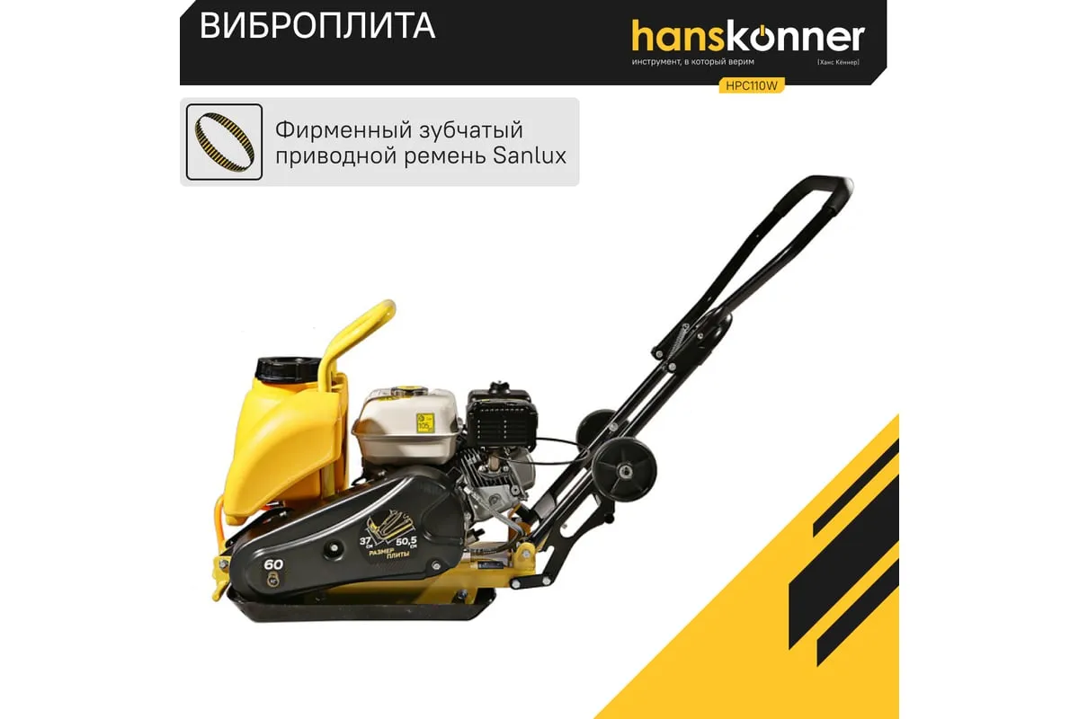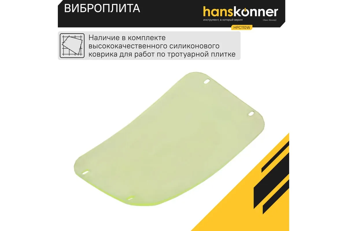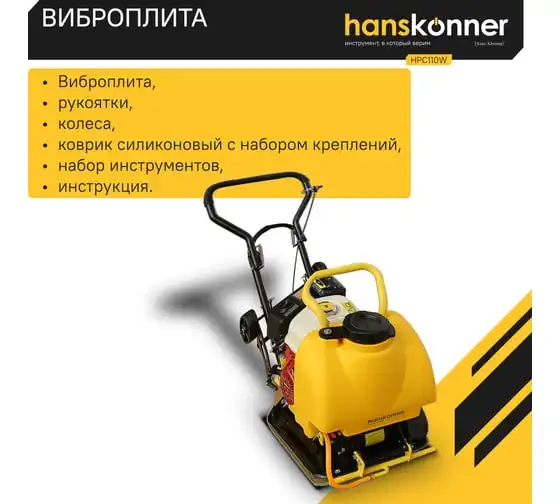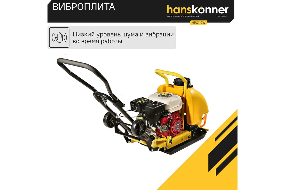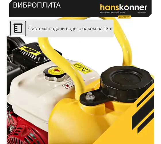Компактная виброплита весом 100 кг HPC110W оснащена 4-х тактным бензиновым двигателем OHV марки Honda GX 160 мощностью 4.8 л.с. Легендарный двигатель Honda GX160 из профессиональной серии двигателей GX; В конструкцию виброплиты вмонтирована система подачи воды на трамбовочную плиту для работ по асфальту с вместительным баком на 13 литров. Наличие в комплекте высококачественного силиконового коврика для работ по тротуарной плитке является существенным преимуществом и позволяет сразу после приобретения приступать к работе с виброплитой без дополнительных затрат. Трамбовочная плита из конструкционной высокоуглеродистой стали имеет закругленные вверх края, что исключает образование наплывов и прочих неровностей на обрабатываемой поверхности. Складная рукоятка для удобства перевозки и хранения. Откидные колеса позволяют легко перемещать виброплиту.