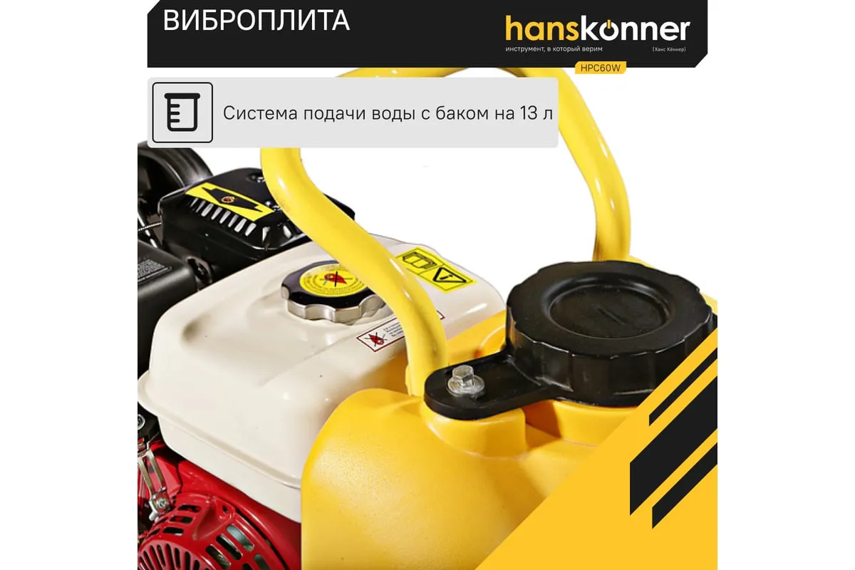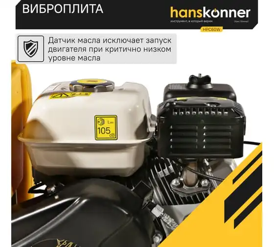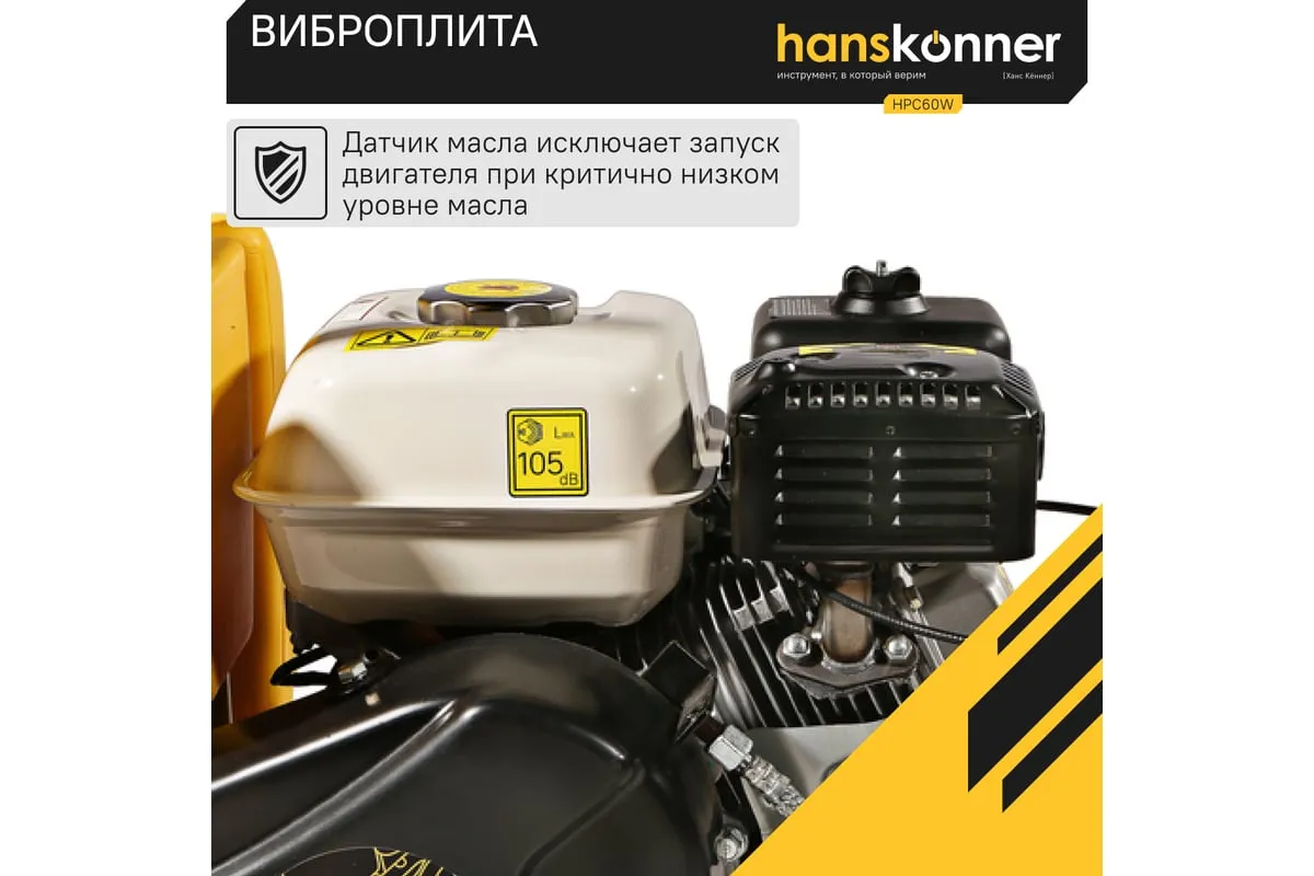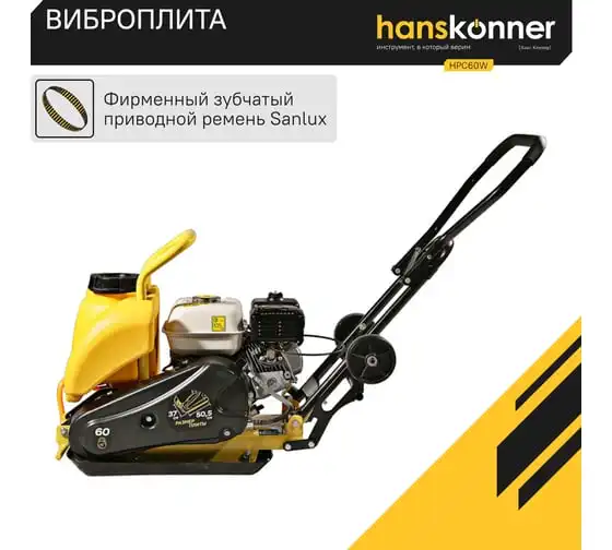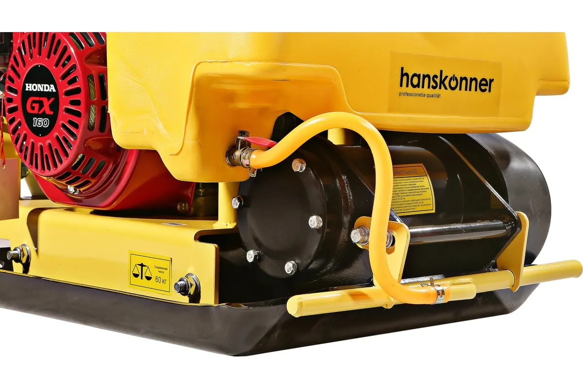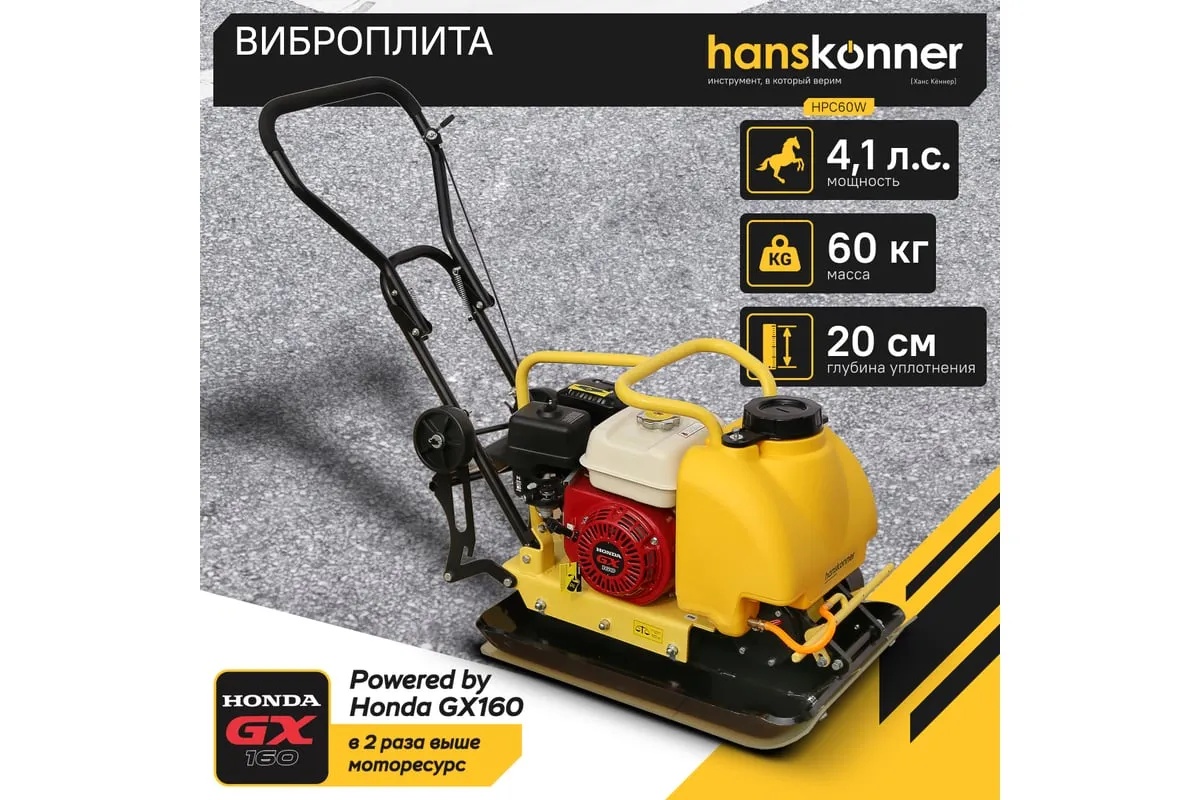 Компактная виброплита весом 60 кг оснащена 4-х тактным бензиновым двигателем OHV марки Honda GX 160 мощностью 4.8 л.с. Л