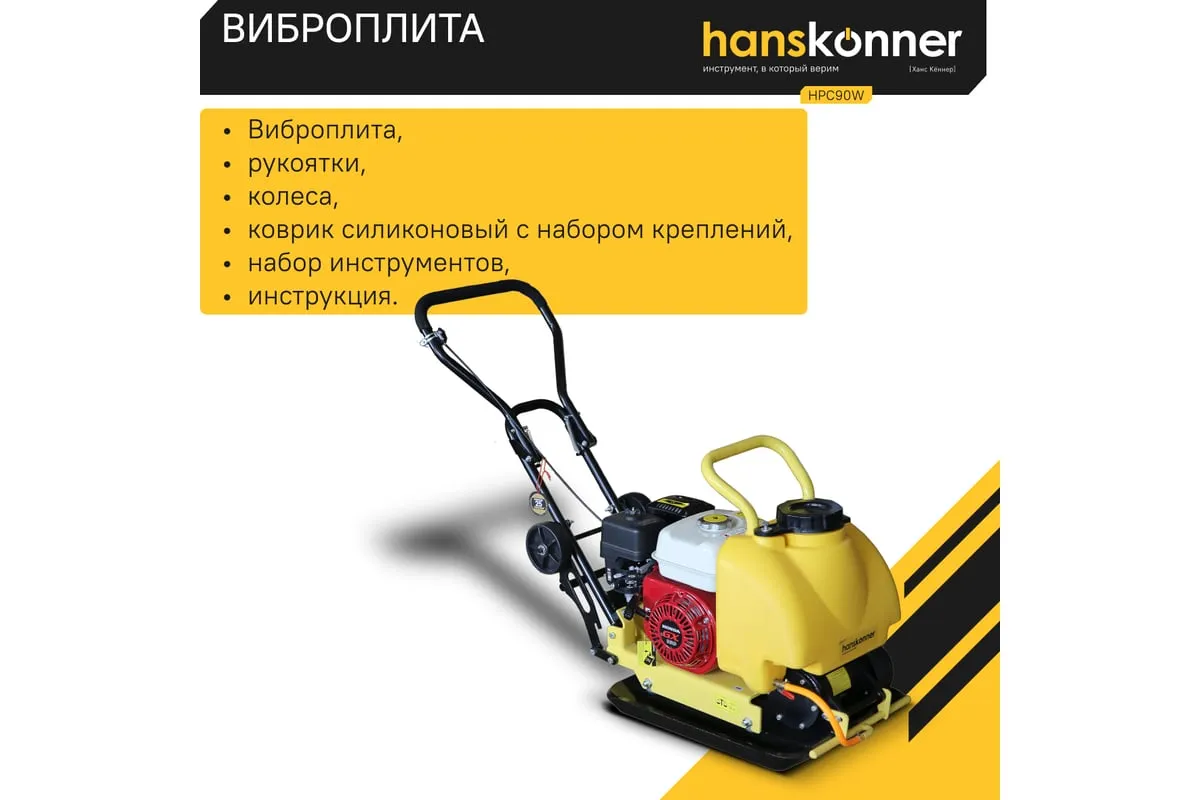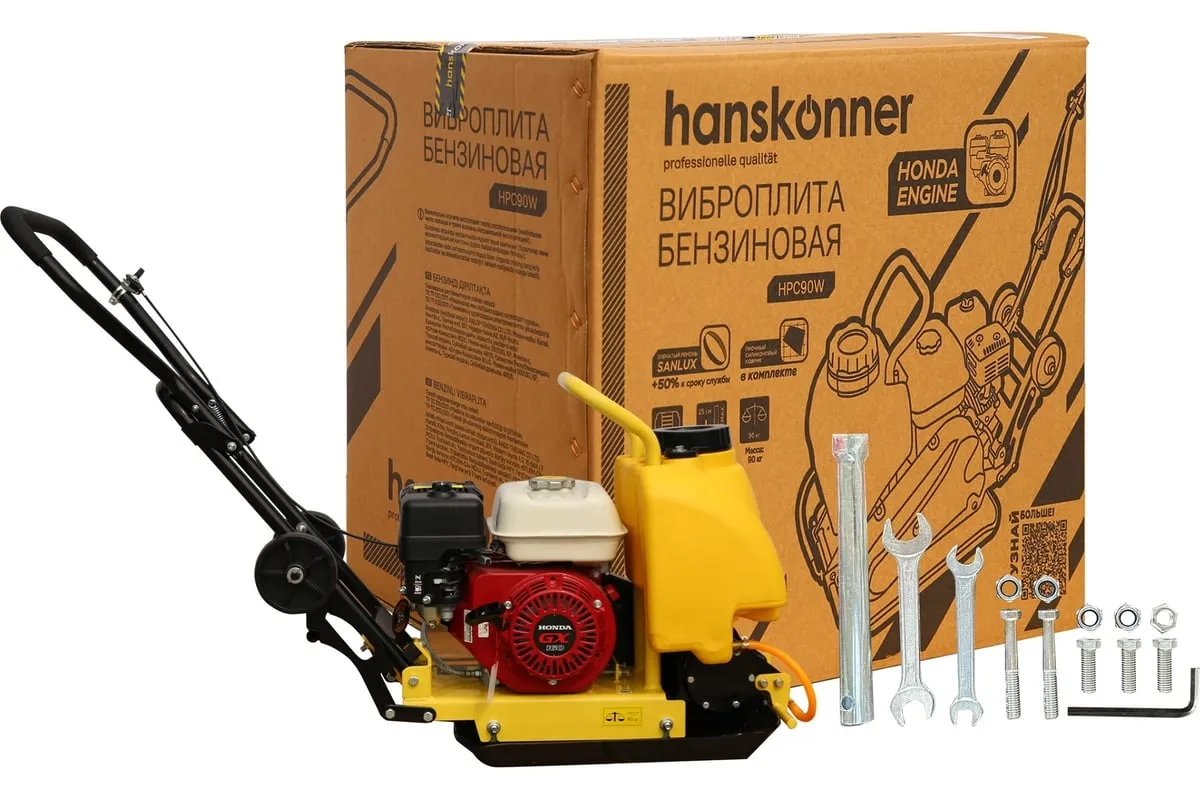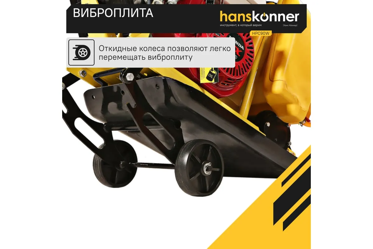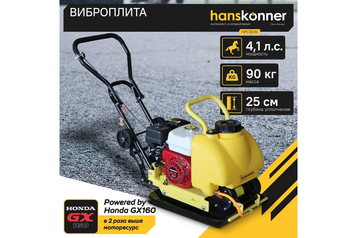 Компактная виброплита весом 90 кг оснащена 4-х тактным бензиновым двигателем OHV марки Honda GX 160 мощностью 4.8 л.с.