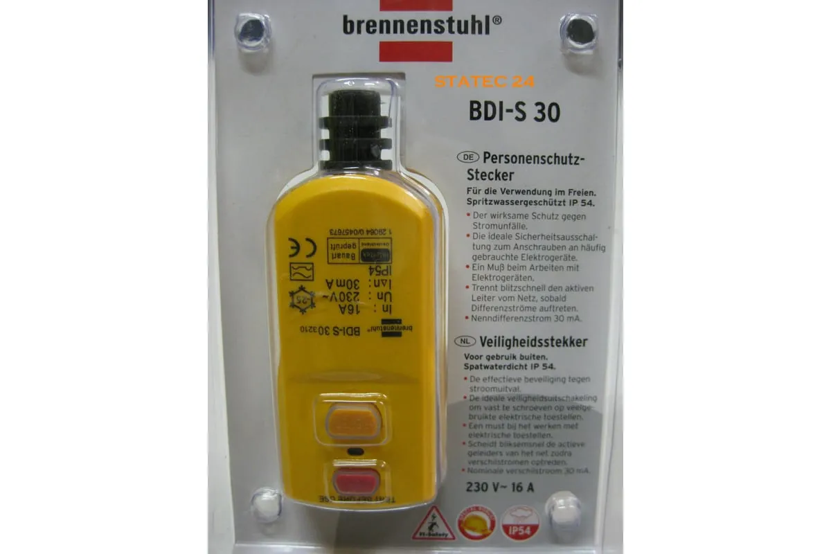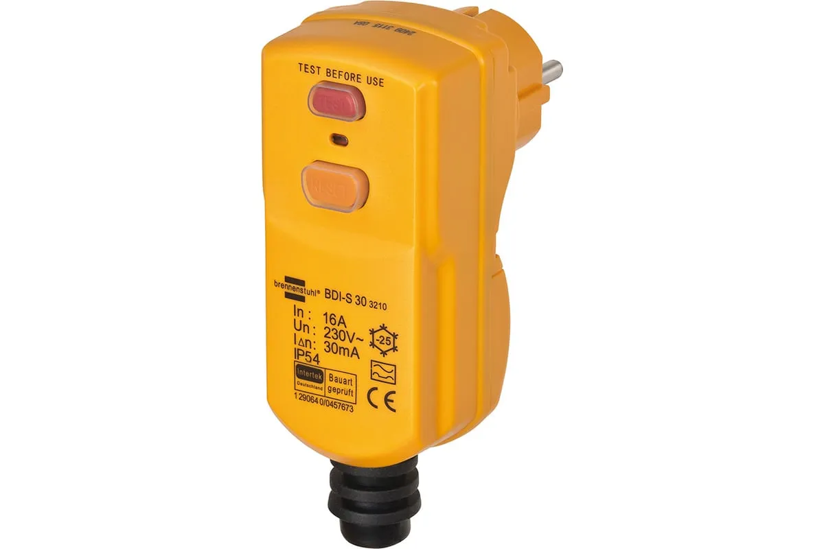 Вилка c УЗО, IP54 Brennenstuhl 1290640 - штепсельное приспособление с защитой от поражения электрическим током. Широко используется в различных сферах для подключения разнообразного оборудования. Подходит для использования на улице, т. к. степень пылевлагозащиты соответствует классу IP54. Номинальное напряжение: 230В, остаточный ток: 30 мА. Подходит для подсоединения кабеля сечением 3х1.5 мм2.