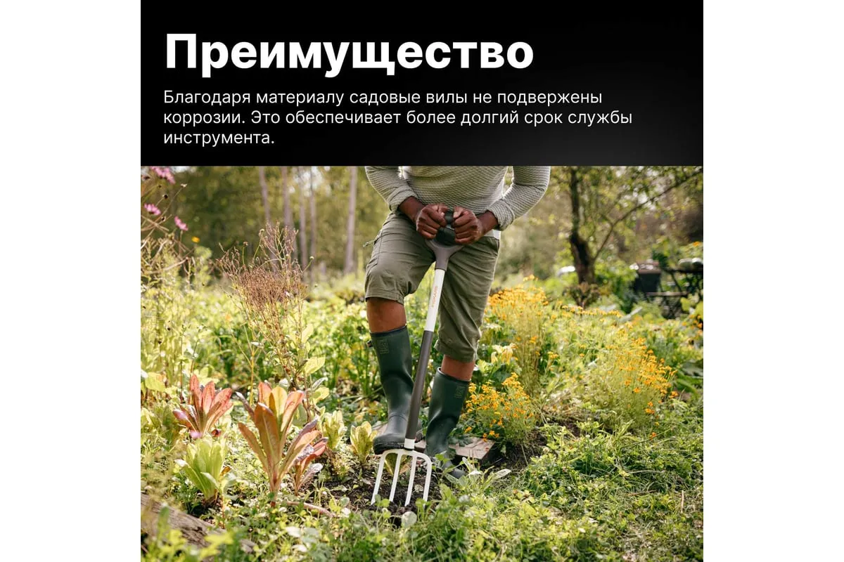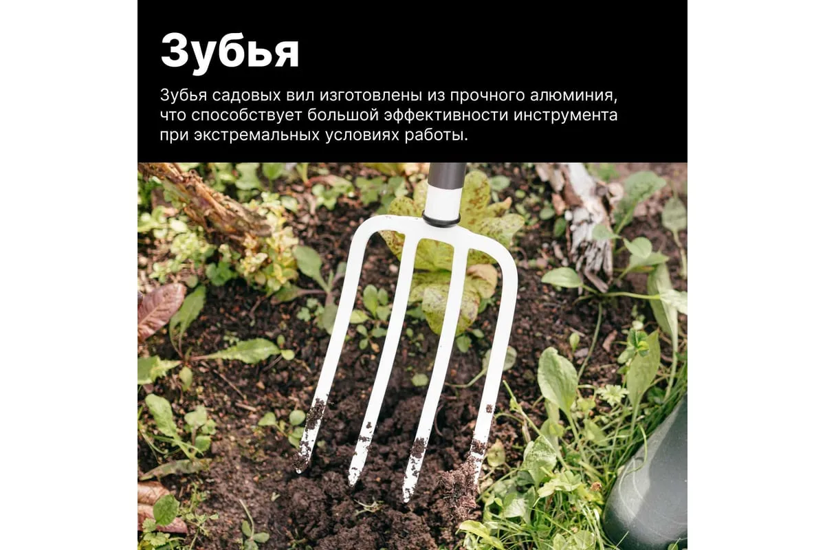 Вилы подойдут для рыхления, вскапывания почвы, а также уборки мусора.