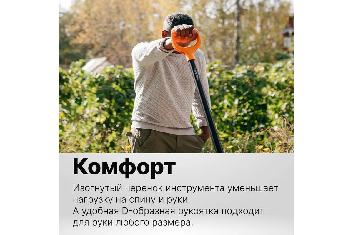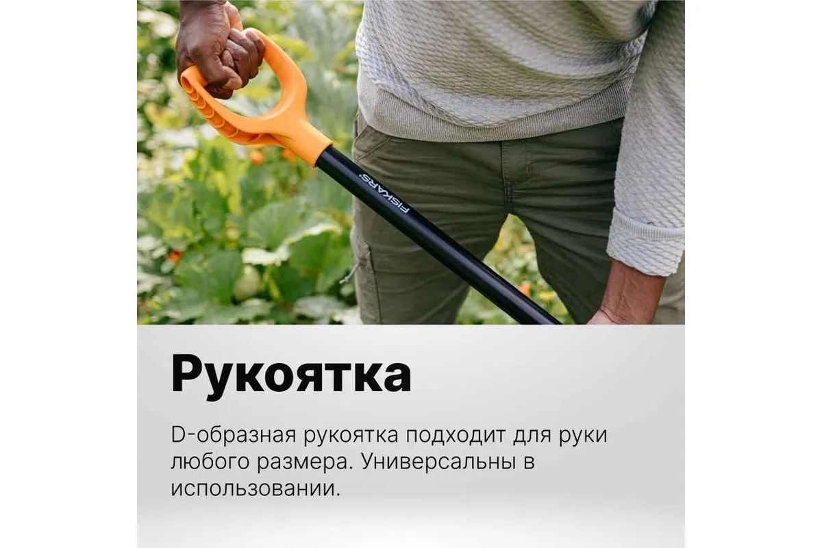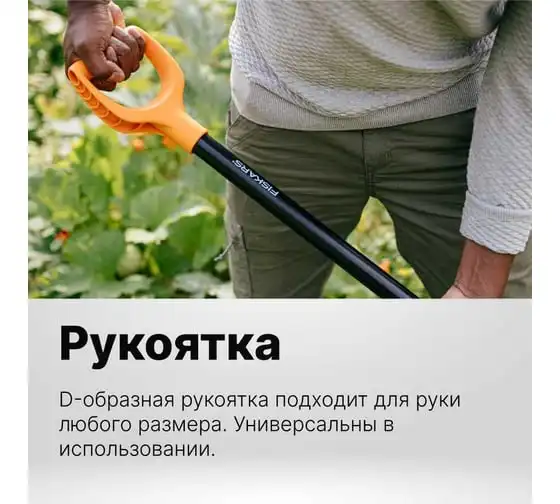 Стальной черенок эргономичной формы облегчает работу. D-образная рукоятка подходит для любого хвата и размера руки.