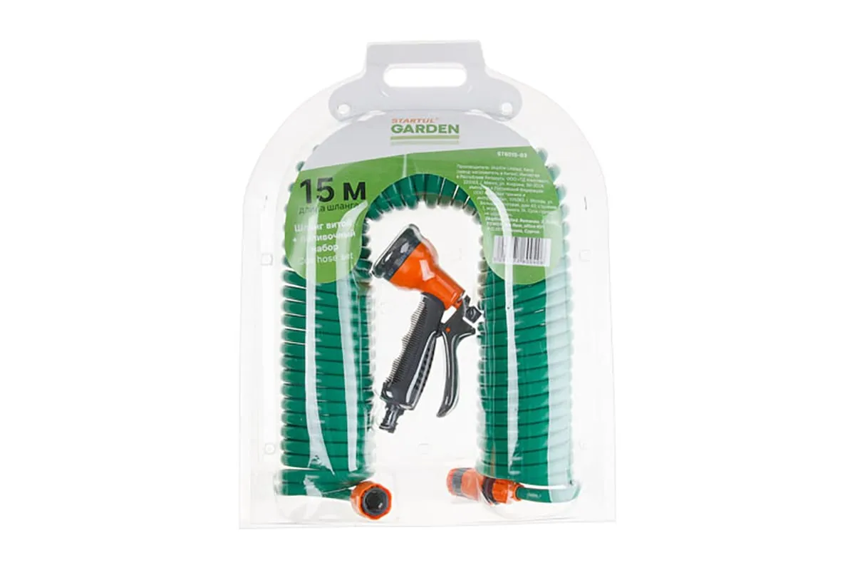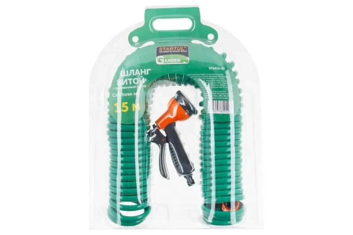 Витой шланг и поливочный набор STARTUL 15 м ST6015-03 применяется для полива небольших площадей.