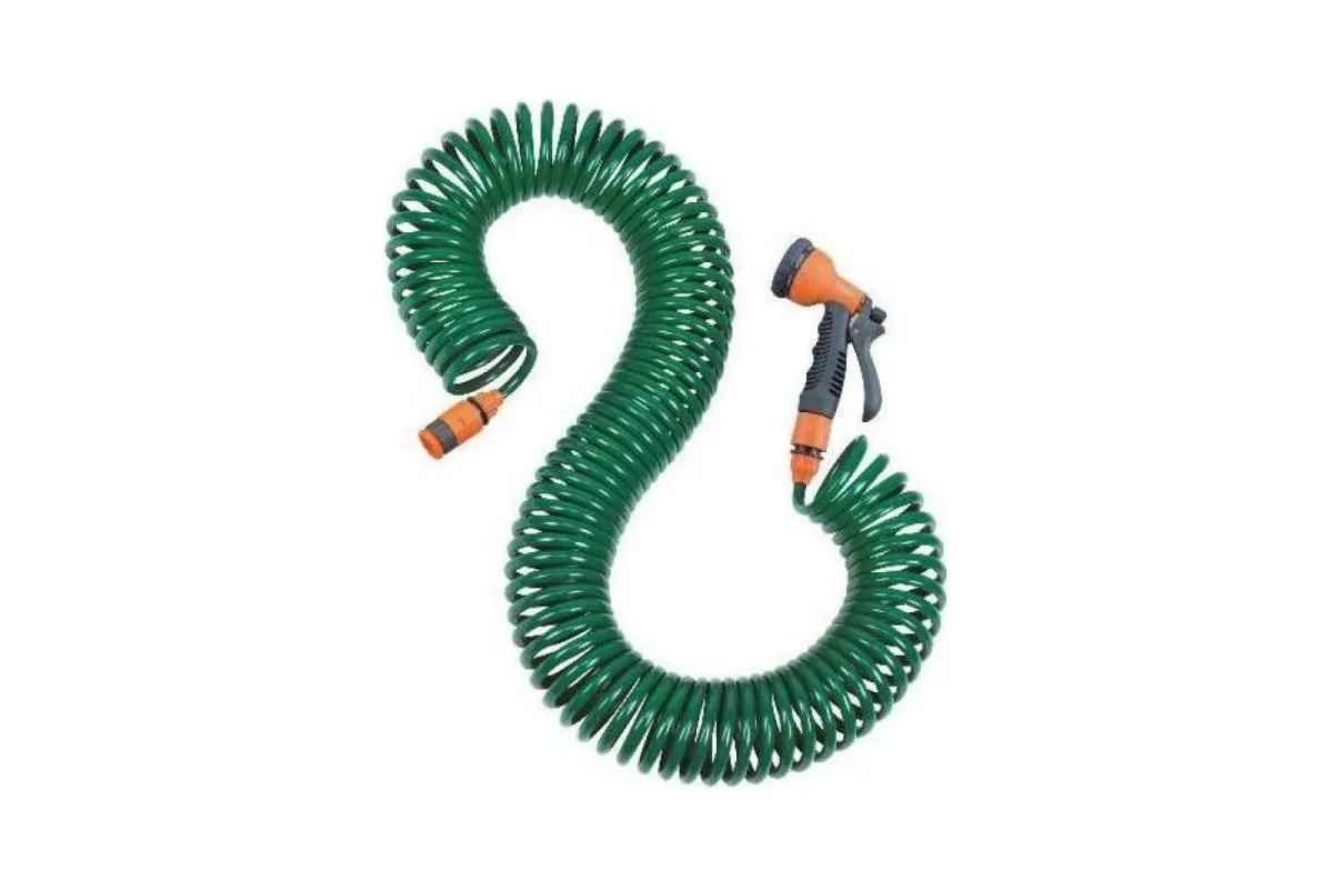 Способен растягиваться и сжиматься, что исключает переламывание шланга, и добавляет удобства при использовании. Растягивается до 15 метров.