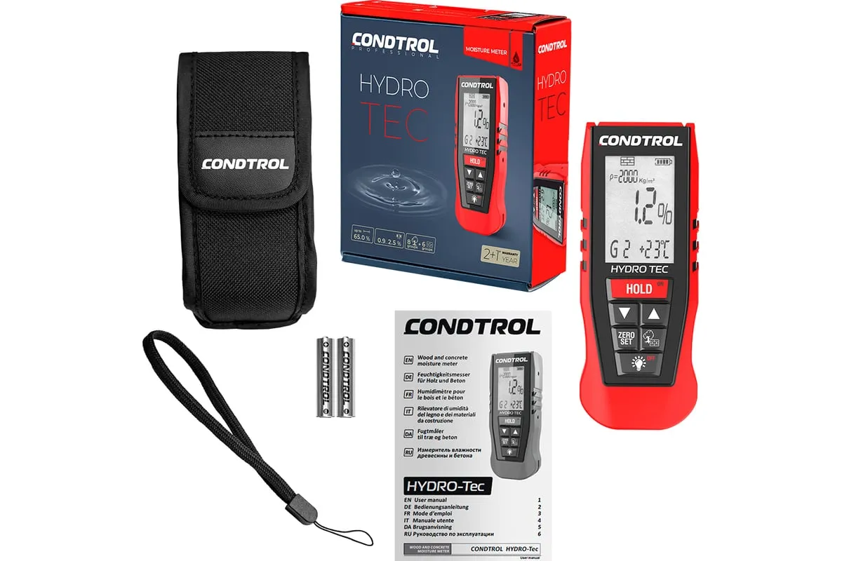 Влагомер стройматериалов Condtrol Hydro-Tec 3-14-020 - профессиональный качественный прибор, который измеряет влажность древесины и стройматериалов. Он широко используется строителями, деревообработчиками, мебельщиками, столярами и другими. В приборе есть меню с 9 группами, включающее в себя 23 вида древесины. Модель работает от 2 батареек типа ААА.