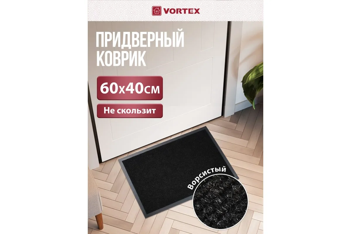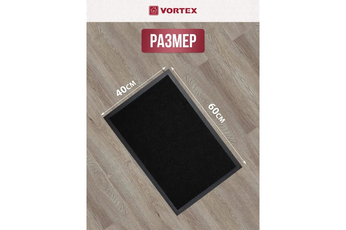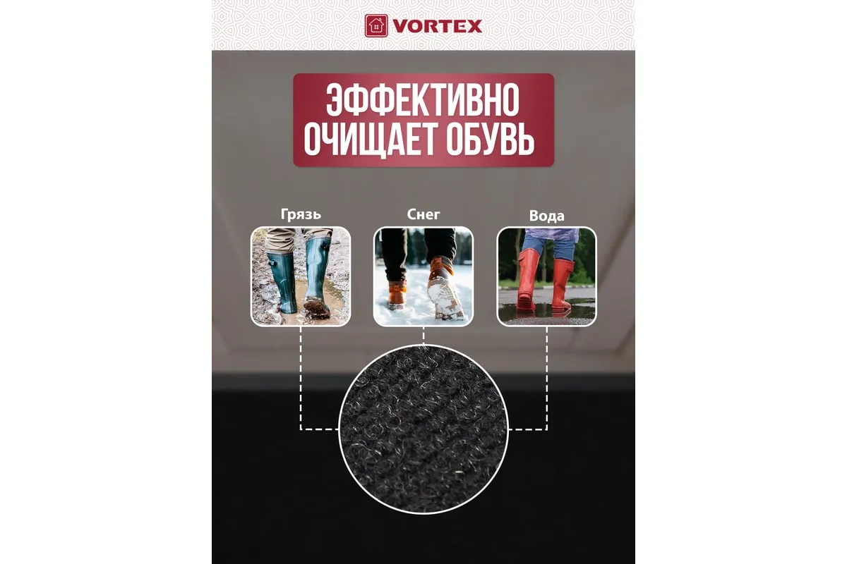 Влаговпитывающий ребристый коврик VORTEX TRIP 40х60 см, чёрный 24190 предназначен для защиты от влаги и грязи.