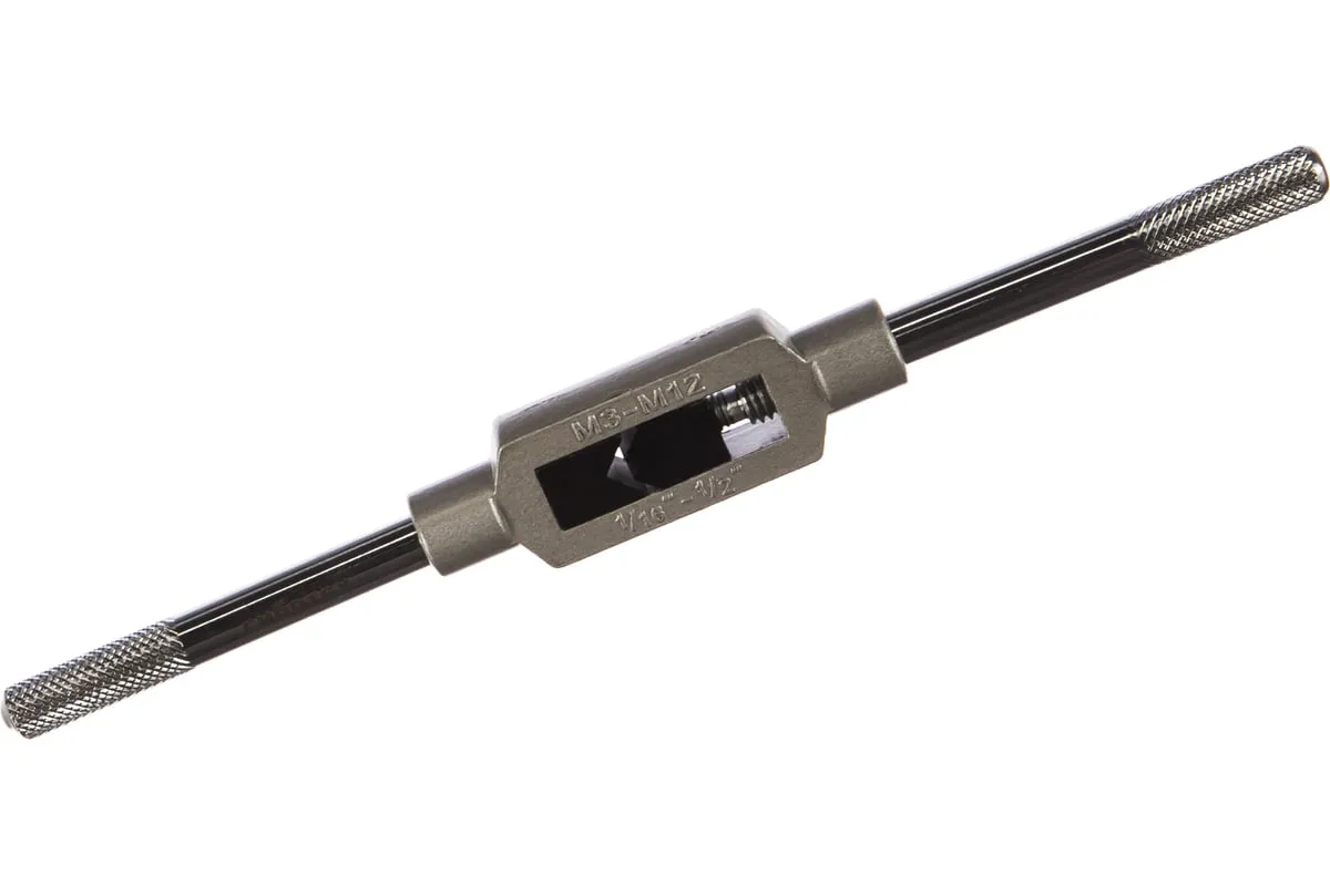 Метчикодержатель М3 - М12 СИБРТЕХ 76912 - это ручной инструмент, предназначенный для фиксации и вращения метчиков при нарезании резьбы. Изготовлен из качественного материала, обеспечивающего долгий срок службы. Благодаря рукояткам с рельефной накаткой руки не скользят во время работы.