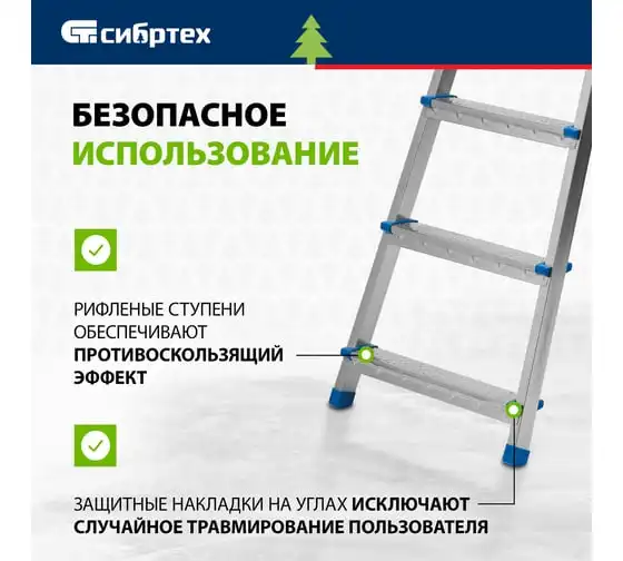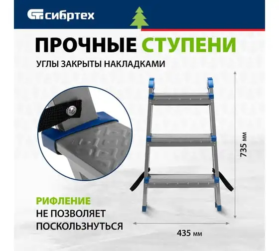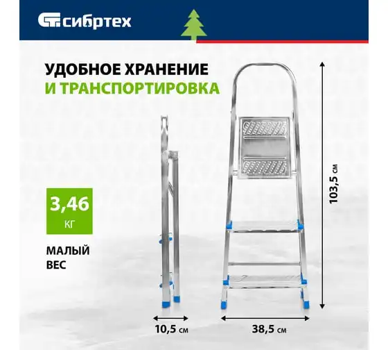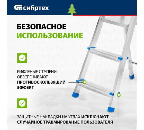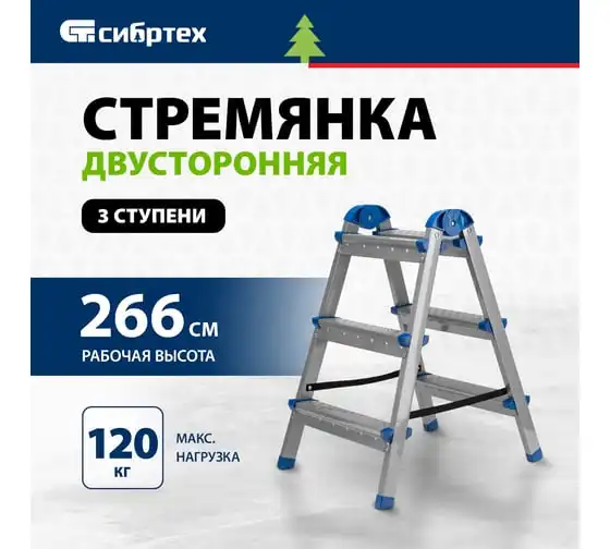 Алюминиевая двусторонняя стремянка СИБРТЕХ 3 ступени 97923