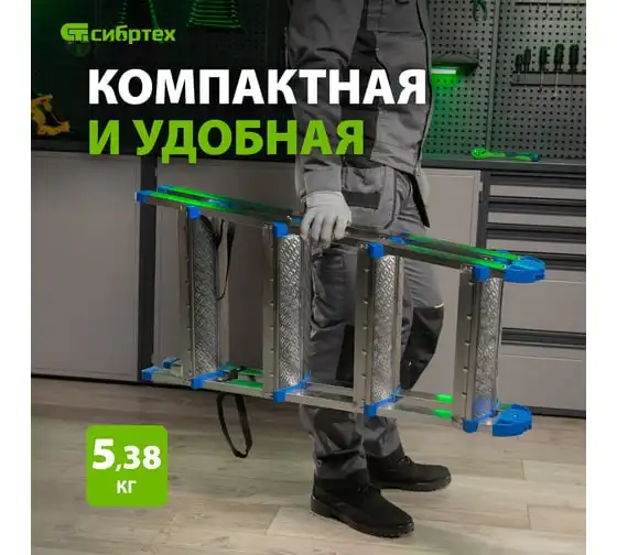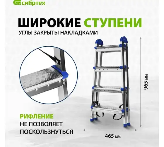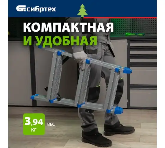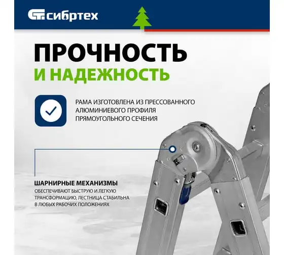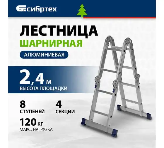 Шарнирная алюминиевая лестница СИБРТЕХ 2х4+2х5 97884