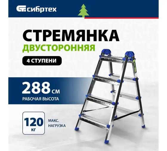 Стальная двусторонняя стремянка СИБРТЕХ 4 ступени 97934