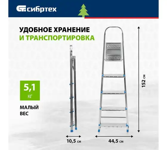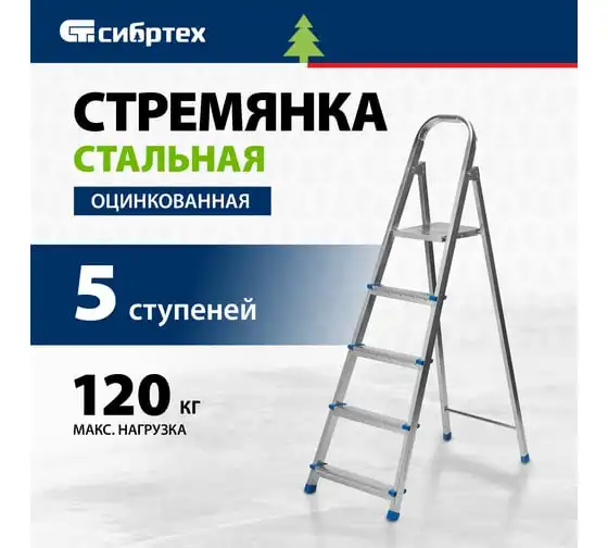 Стальная двусторонняя стремянка СИБРТЕХ 5 ступеней 97935