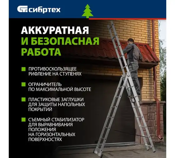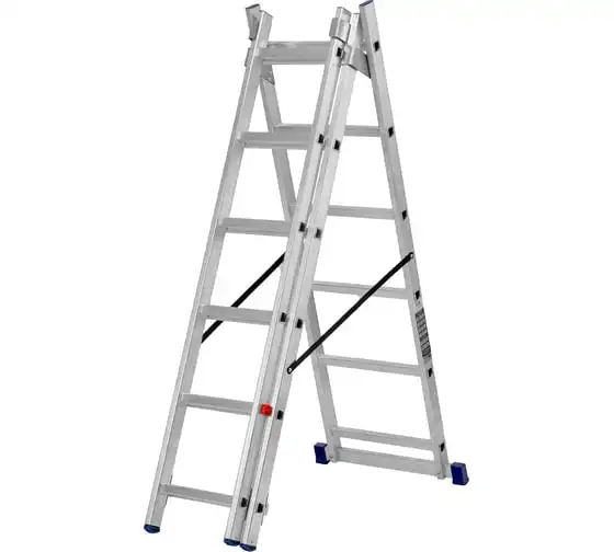 Алюминиевая трехсекционная лестница СИБРТЕХ 3х6 ступеней 97816