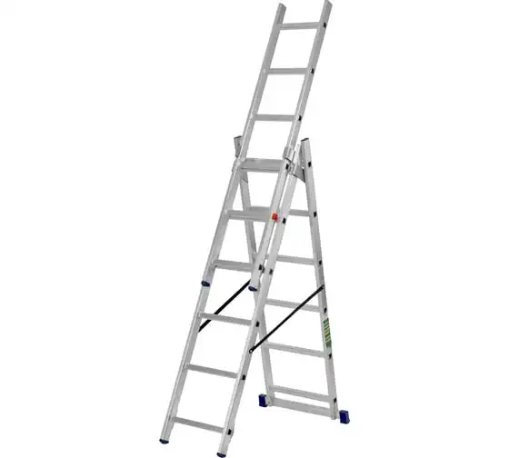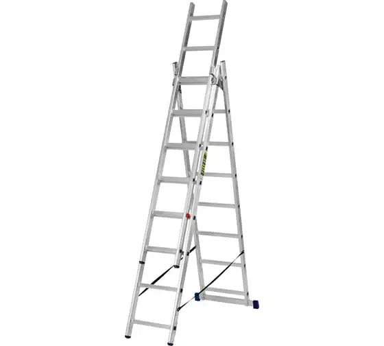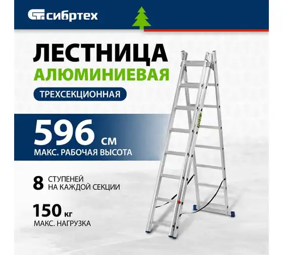 Алюминиевая трехсекционная лестница СИБРТЕХ 3х8 ступеней 97818