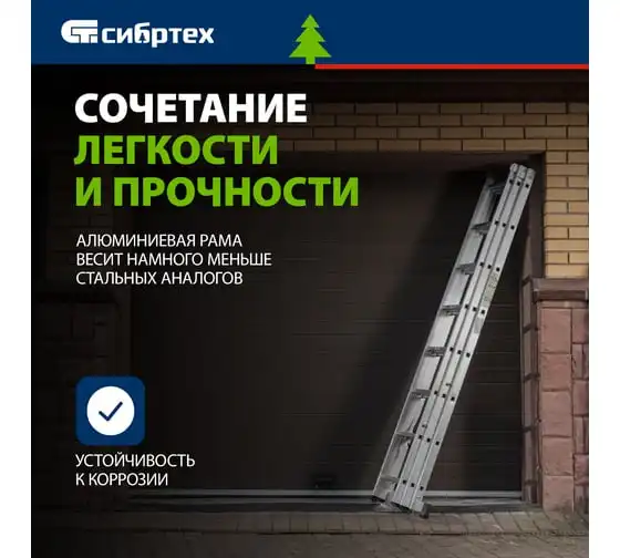Алюминиевая двухсекционная лестница СИБРТЕХ 2х7 ступеней 97907