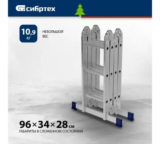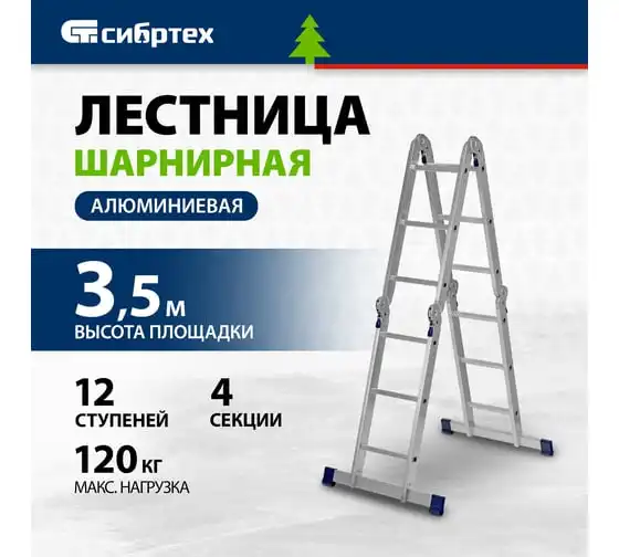Шарнирная алюминиевая лестница СИБРТЕХ 4х4 97882