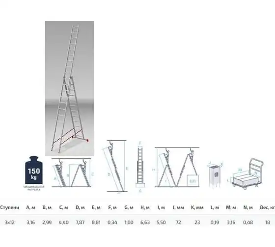 Лестница алюминиевая STARTUL PRO 3-х секционная, 299х787х316 см, 3x12 ступеней, 18 кг ST9942-12