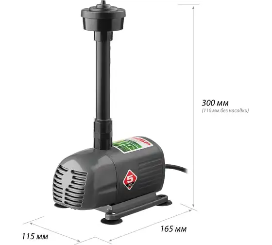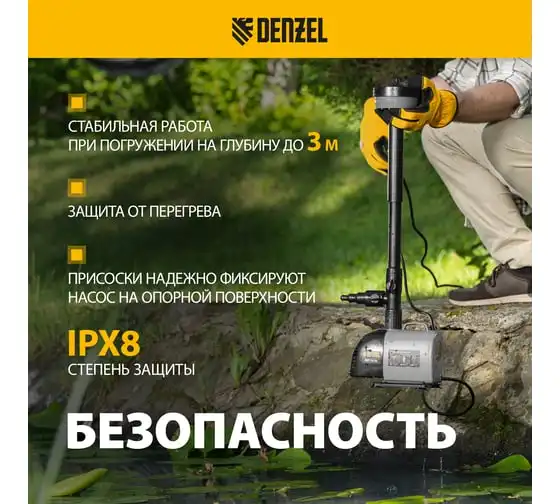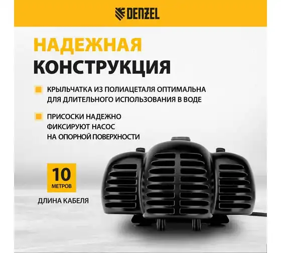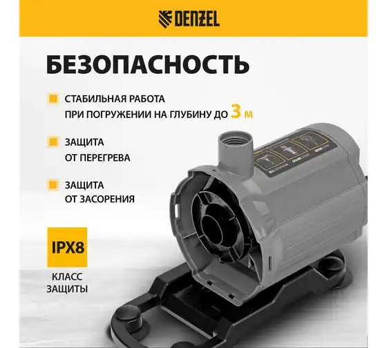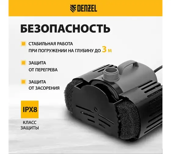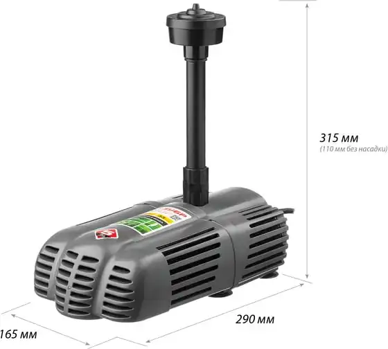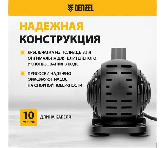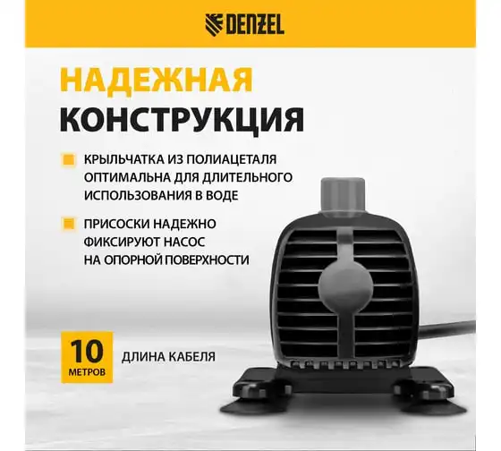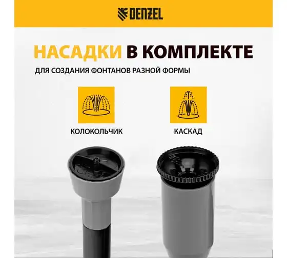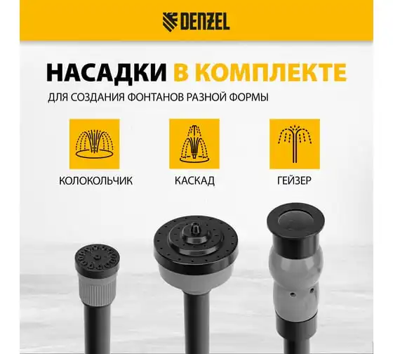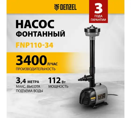 Насос фонтанный fnp110-34, 112 вт, подъем 3,4 м, 3400 л/ч, колокольчик/каскад/гейзер Denzel 99032