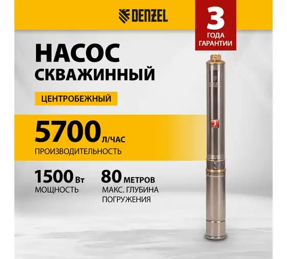 Скважинный центробежный насос 1500 Вт DENZEL DWC-4-80 97256