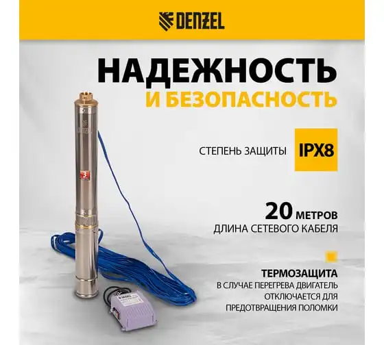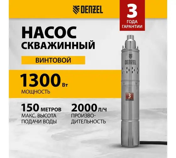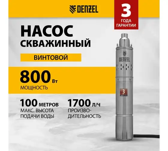 Скважинный центробежный насос 2200 Вт DENZEL DWC-4-140 97258