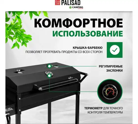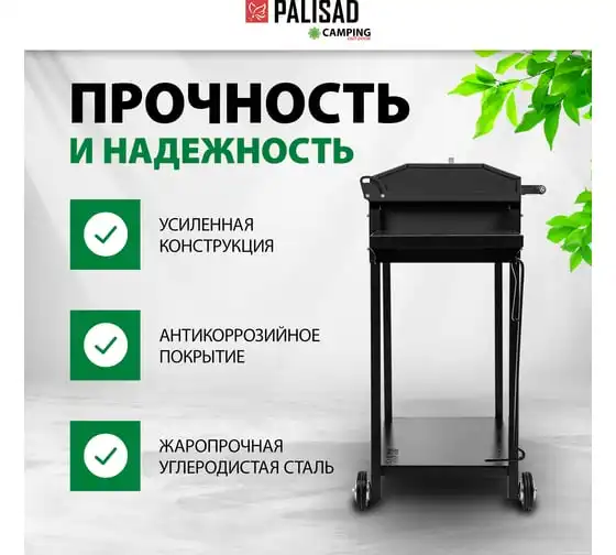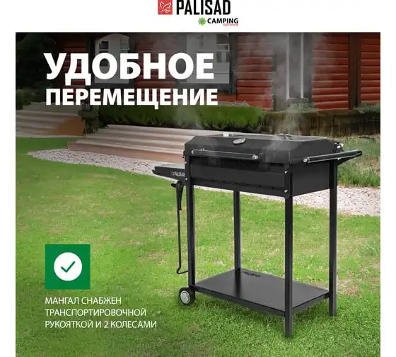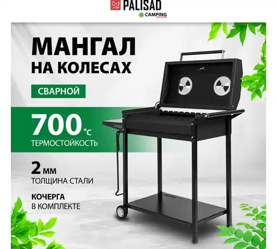 Сварной мангал на колесах PALISAD Camping 662х390х152/805мм, сталь 2 мм, кочерга 69669
