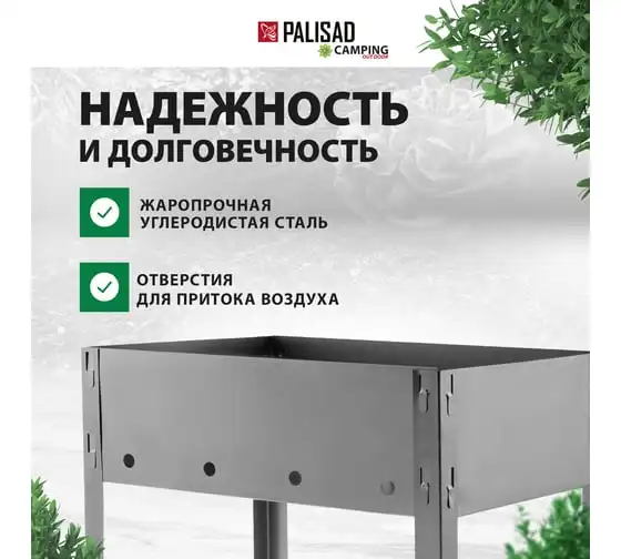 Сварной мангал PALISAD Camping 605х375х138/640 мм, сталь 2 мм 69668