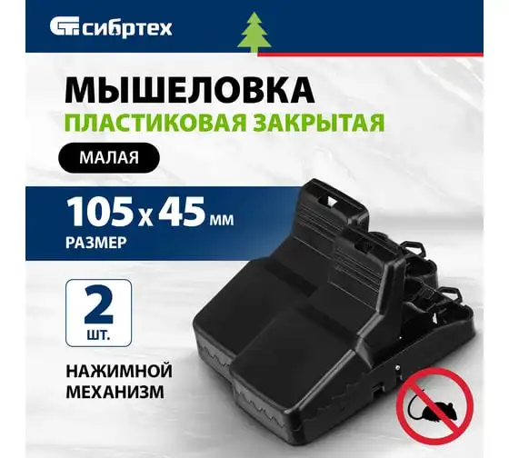 Закрытая малая мышеловка СИБРТЕХ пластик, 105х45 мм, 2 шт. 94124