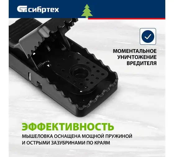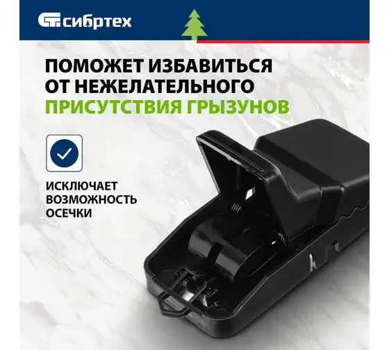 Пластиковая открытая мышеловка СИБРТЕХ металлический механизм, малая, 2шт. 94125