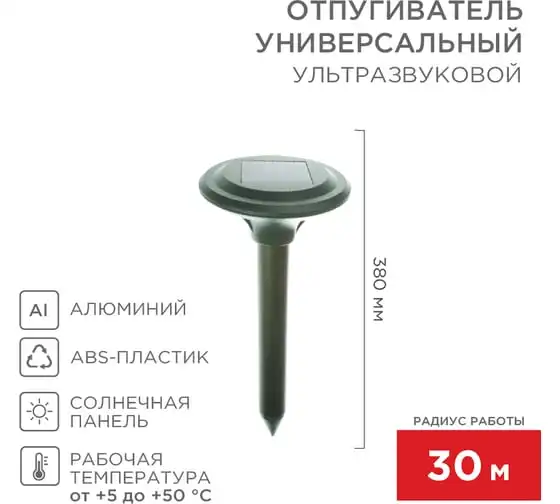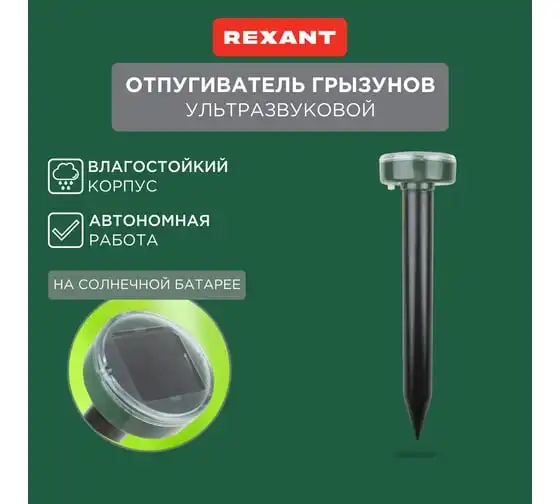 Ультразвуковой отпугиватель кротов на солнечной батарее REXANT R30 71-0007