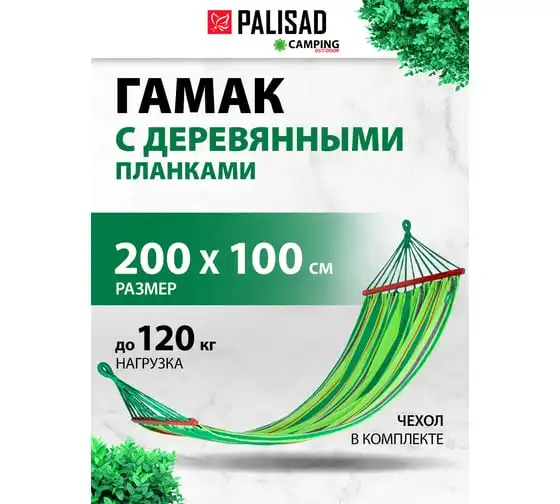 Гамак с деревянными планками PALISAD Camping 200х100 см 69586