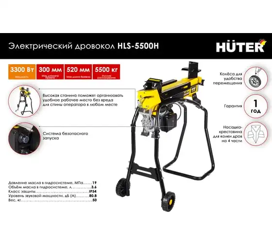 Электрический дровокол HUTER HLS-5500Н 70/14/2