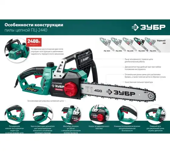 Цепная электрическая пила ЗУБР 2400 Вт ПЦ-2440