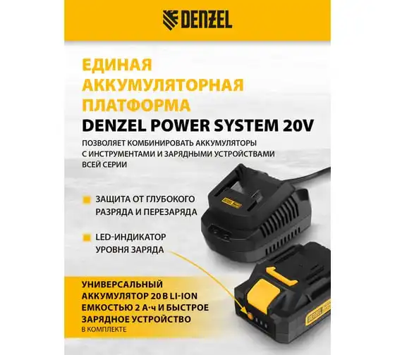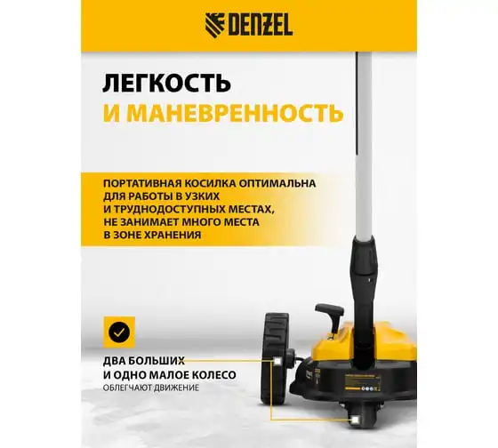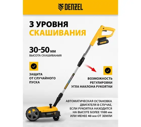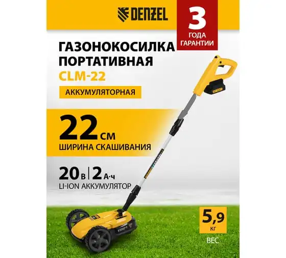 Портативная аккумуляторная газонокосилка Denzel CLM-22, Li-ion, 20В, 220 мм 58860
